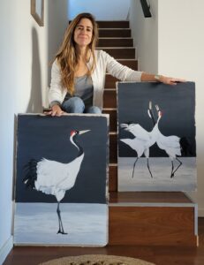 Selected for our Faces exhibition, Moreya’s work stood out for its intensity and refusal to comfort. Rooted in instinct, shadow, and transformation, her paintings reveal the parts of ourselves we’re