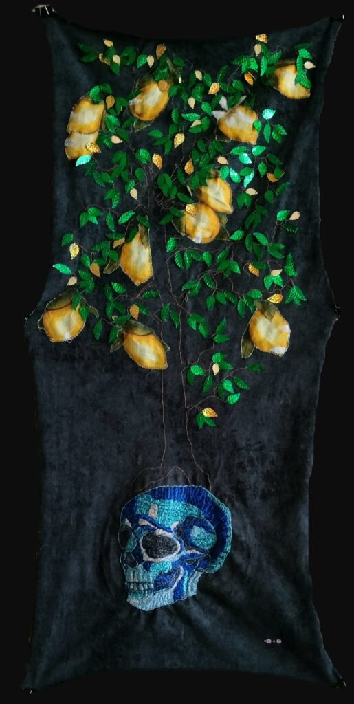 Tree of Life Brings Sour Fruits, 2026, 50×100 cm, mixed media on textile
