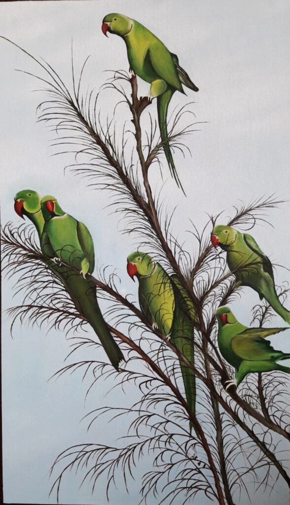 What connects the works is not style, but sensitivity. Each piece reflects a careful consideration of what birds mean within the artist’s world. Seen together, they remind us how a single theme can open into many directions when approached with honesty and care.