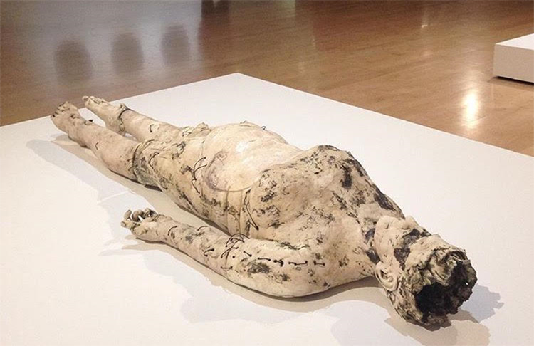 I use stoneware paper clay, known for its versatility and adaptability during the building process. I hand build my figurative pieces by rolling out slabs and coils, wrapping them around makeshift armatures and sculpting the details. As I work, I feel the direct connection between me and the clay. It is made from minerals of the earth and it holds memories. It’s malleable and I like to think we are too; not without conviction but flexible enough to ride the waves of change. I think about the layers we add to our lives while investigating the changes our bodies experience over time. Living in Arizona’s Sonoran Desert made it an ever-present influence on me and I found myself harkening back to childhood inspirations. Bits and pieces were picked up and saved there much like the bits I’ve been collecting from woods and shorelines since childhood. These bits share aspects of us: both individually transient and collectively existing for thousands of years. Landforms are continually expanding, contracting, and redefining themselves; so are we. My crumpled figures may seem to be in ruins, yet they still exist.