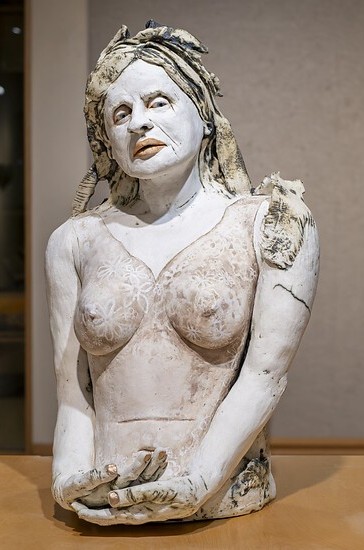 After moving to Arizona, that connection deepened. She started taking ceramic classes, studying with figurative sculptors, and by 2008 she was already exhibiting her work. Two decades in, she’s still working with the same material but the conversation has gotten heavier.
