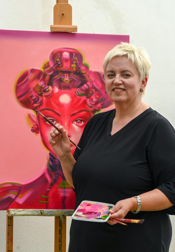 I’ve always wanted to draw, so at 50, I returned to painting. I have two passions in life: hairdressing and painting. Working with color in hairdressing has honed my eye and my love for the shades I use in my work.