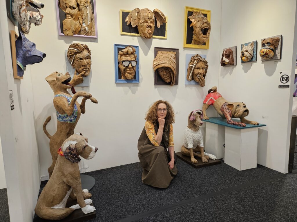 Limor is a selected artist for the Faces exhibition and her sculptures stop people for a reason that takes a second to land. You see the face first. The expression. The energy. The gesture. And then you realise what you’re looking at is layered cardboard and repurposed paper and suddenly the whole thing means something different. Because this material was garbage yesterday. And today it’s looking back at you with more life in it than you were expecting to feel on a Tuesday afternoon.