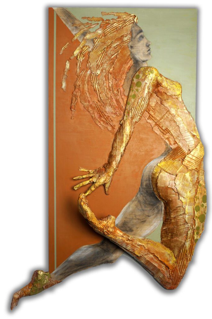 Honestly, this is not something I am consciously aware of. I create art that is authentic to me–my experiences, thoughts and feelings. Sometimes an image I come across will spark a memory and sometimes a memory will spark a search for the right imagery. Many of my dynamic figurative pieces are of gestures that I was never able to achieve as an young dancer.