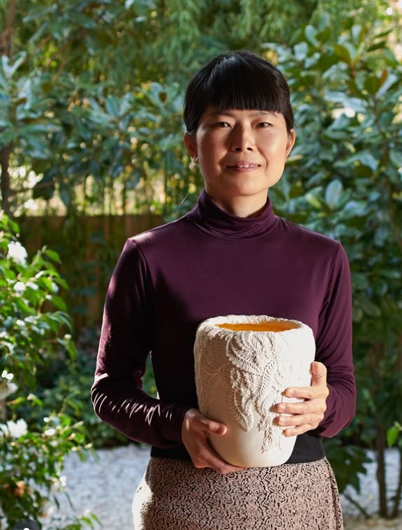 Hosono’s pieces sit at the meeting point of nature study and careful craft. Each vessel feels as though it has grown rather than been assembled, built leaf by leaf with steady hands and long practice. As part of a group of five remarkable women working in ceramics today, she offers a calm, meticulous approach that shows how clay can capture the rhythms and structures found outdoors, translating them into forms that invite close looking.