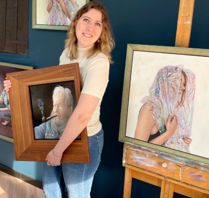 Amy Verhoeff is a Dutch painter known for her detailed, realistic work shaped by nature, daily life, and long standing ties to her surroundings. Much of her subject matter comes from the people around her and the quiet relationship between humans and the natural world. Early in her career she focused mainly on drawing with graphite and pastels, later moving into oil painting and combining both methods into the process she uses today.