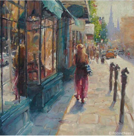 Robin is drawn to scenes that feel lived in rather than staged. Whether painting on site or working from reference, she studies movement, light, and human presence with quiet attention. Through this steady practice, she builds images that speak to shared experience and the familiar rhythms of everyday life.