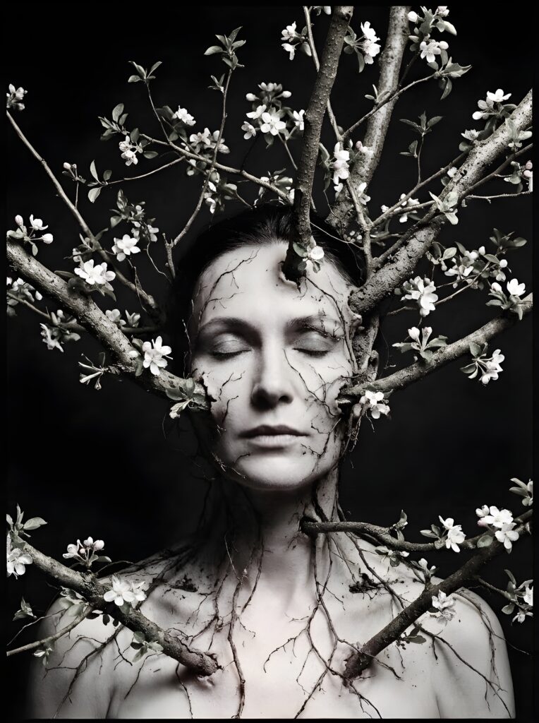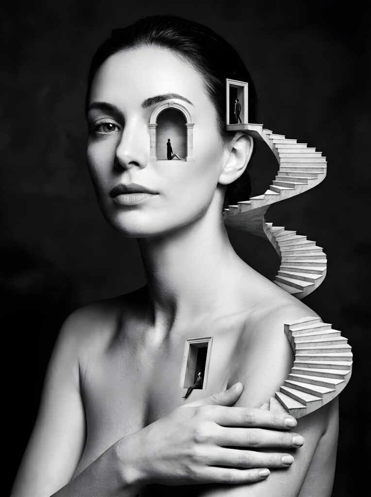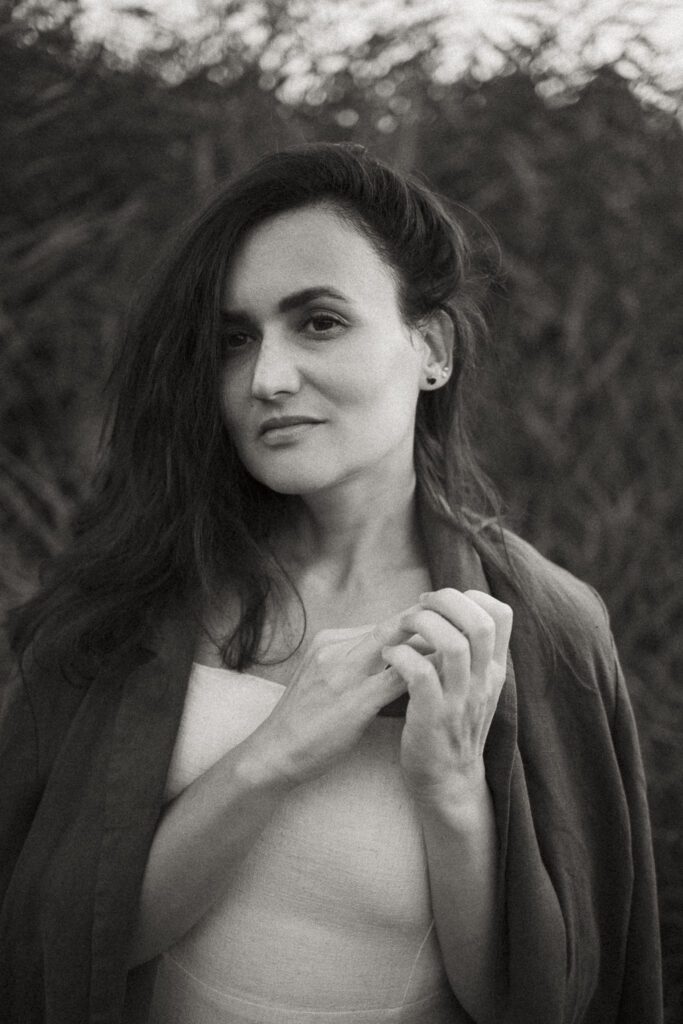 She’s a digital visual artist who works with walnut grading, black and white, sepia, muted peach, grey, and softened vintage tones. And if you think that sounds subtle you’re right. It is. Deliberately, precisely, ruthlessly subtle. Because Cristina isn’t interested in grabbing your attention. She’s interested in what happens after you give it.