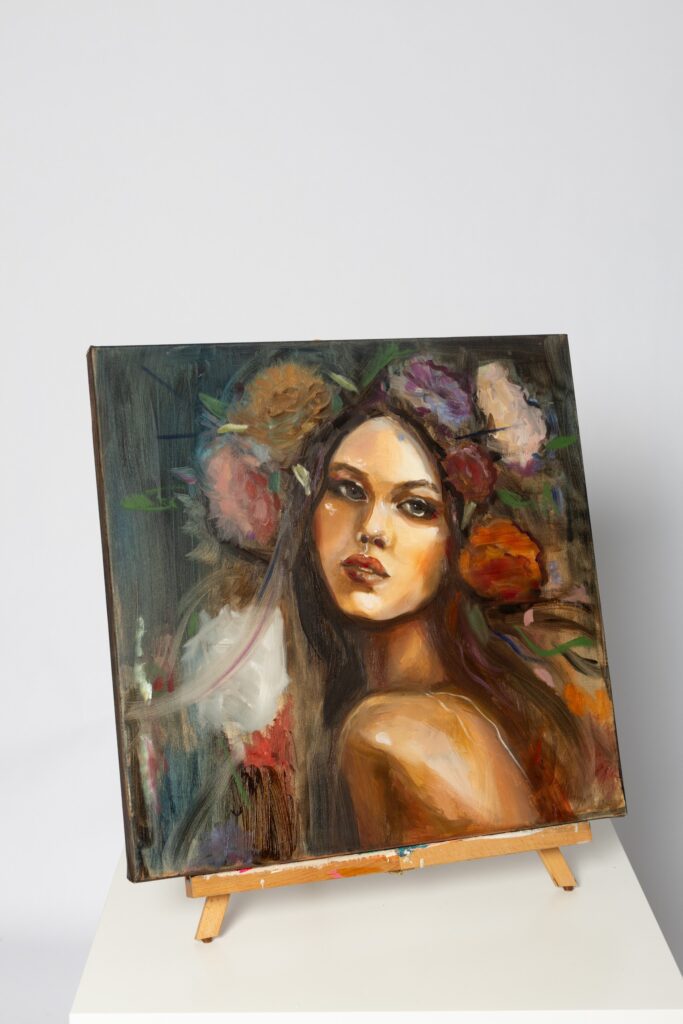I always strive for my works to be in color harmony, so that the colors sing together coherently. In portrait painting, I prefer working with a limited palette, using just a few base colors. However, lately, I’ve enjoyed experimenting with mixed media, especially when creating paintings of flowers and birds. Probably the vibrant environment of Florida and my colleagues at the gallery where I work are influencing my preferences and bringing changes. We’ll see what comes next.