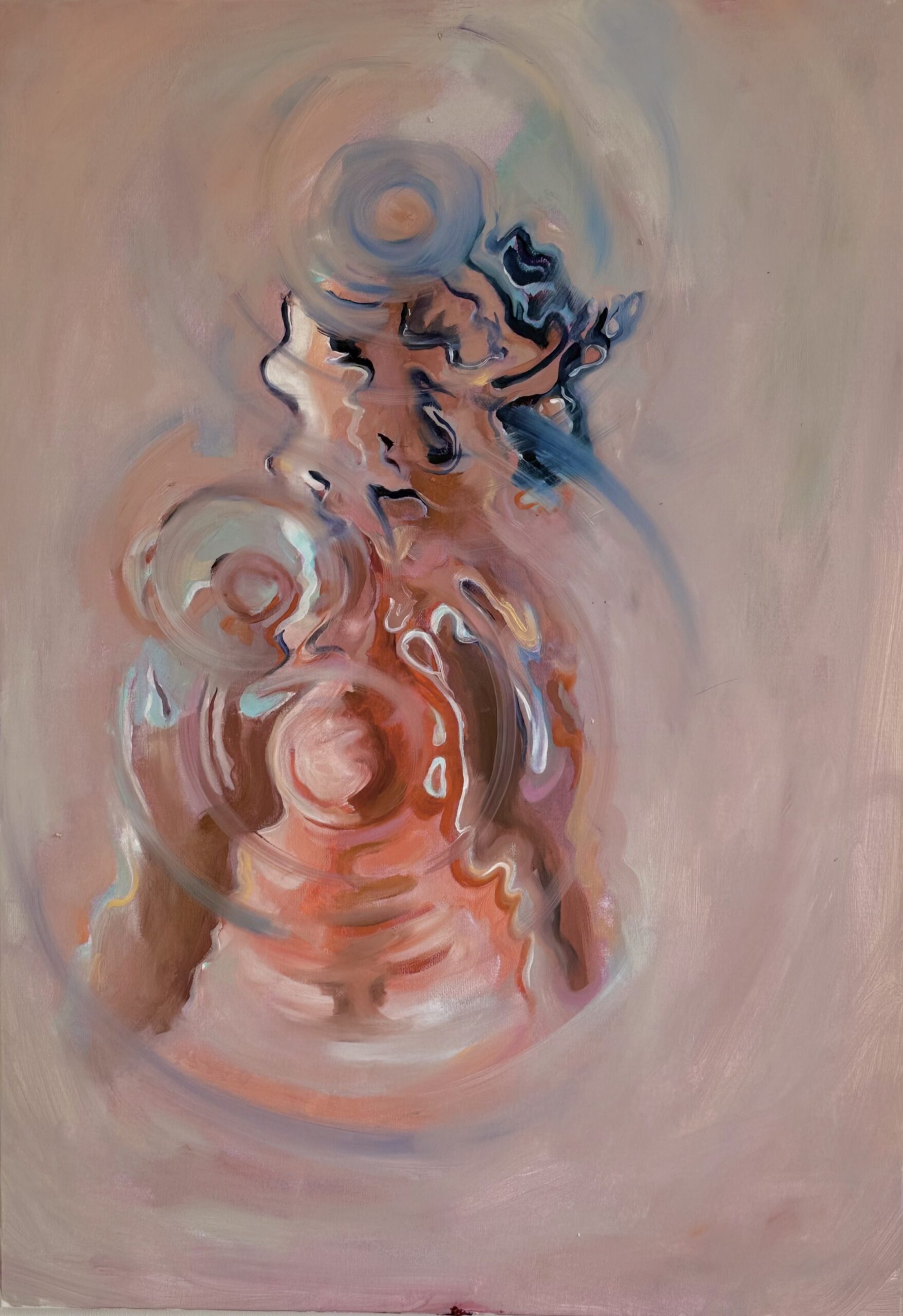 Born in 1999, Niah McGiff is a London-based artist whose paintings explore how digital culture reshapes our sense of the spiritual and the natural. Through a surreal approach to figuration, she creates images where bodies and environments appear unstable – dissolving, refracted, or half-remembered. Her work considers how we see ourselves, each other, and reality itself in a world where screens, memory, and myth constantly shift our perception. Niah grew up in England with a mixed heritage, navigating life within a predominantly white environment. Her work reflects on the complexities of belonging, not only in relation to personal identity but also within broader contexts of digital culture, politics, and emotional life. Through this lens, she explores the spaces we inhabit, the ways we seek connection, and the challenges of navigating a multifaceted identity. She is also deeply interested in psychological and scientific theories surrounding the mind, emotion, and the human drive to express. Central to this inquiry is the concept of the explanatory gap, a term coined by philosopher Joseph Levine to describe the limitations of physical theory in accounting for the richness of subjective experience. Niah’s practice seeks to bridge this divide, to reach across the space between inner experience and outer expression. Through experimental and intuitive processes, she investigates how diverse mediums and visual languages might articulate what is otherwise ineffable.