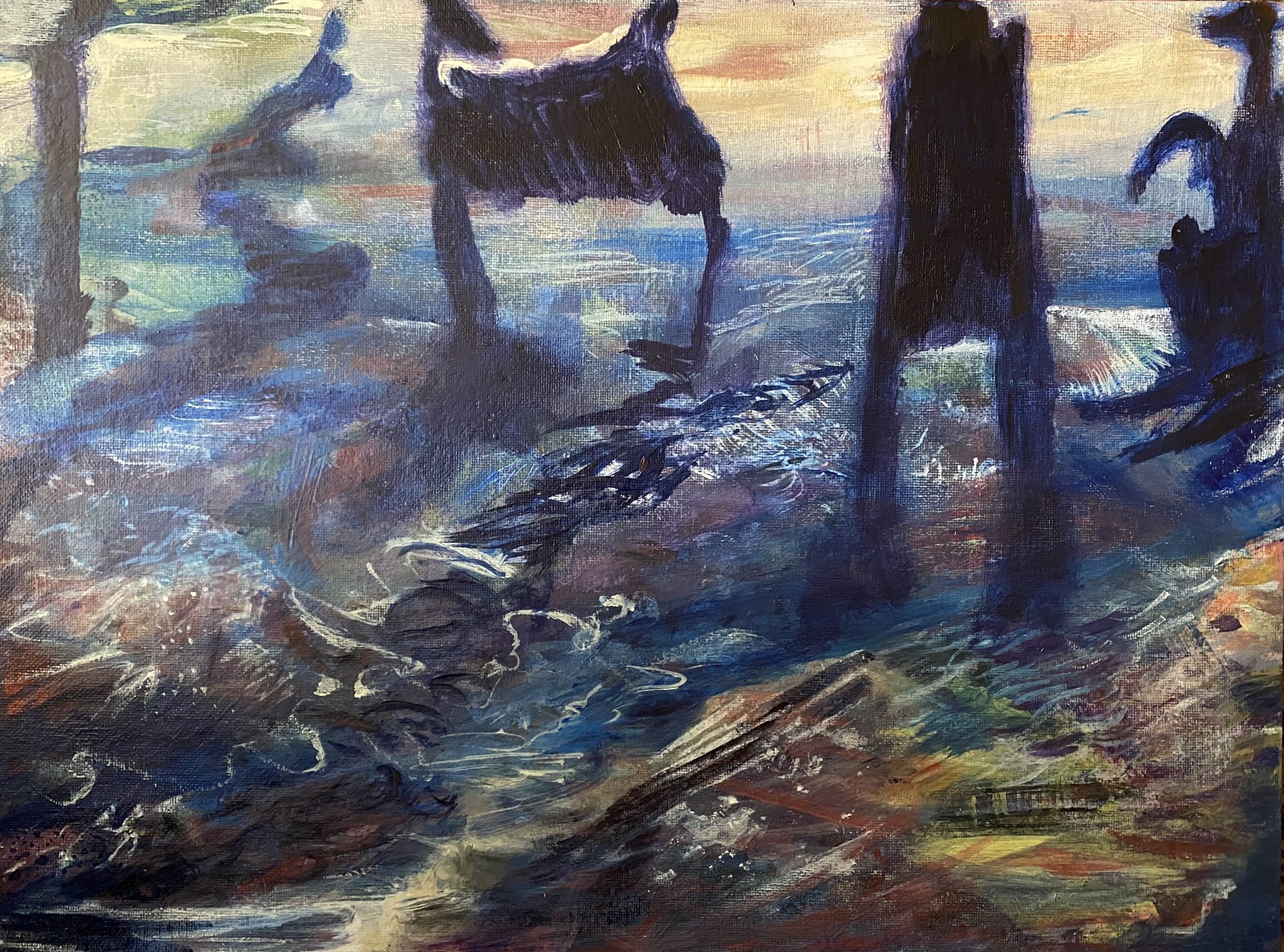 Creating artwork is like solving a puzzle. Each piece—whether it’s a colour, mark, or layer—needs to fit just right to satisfy my emotional response for the day. It is incredibly rewarding to reach that moment when I look at the painting and feel a sense of completeness like the puzzle has come together.