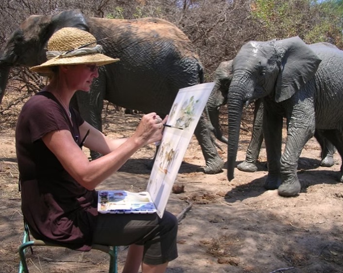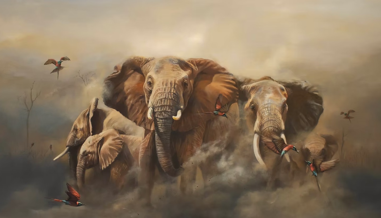 She supports conservation efforts through her partnerships with Helping Rhinos and the David Shepherd Wildlife Foundation, often donating her paintings to help raise funds for wildlife protection. For her, painting and conservation are inseparable; both speak to the need to preserve what remains before it’s gone.