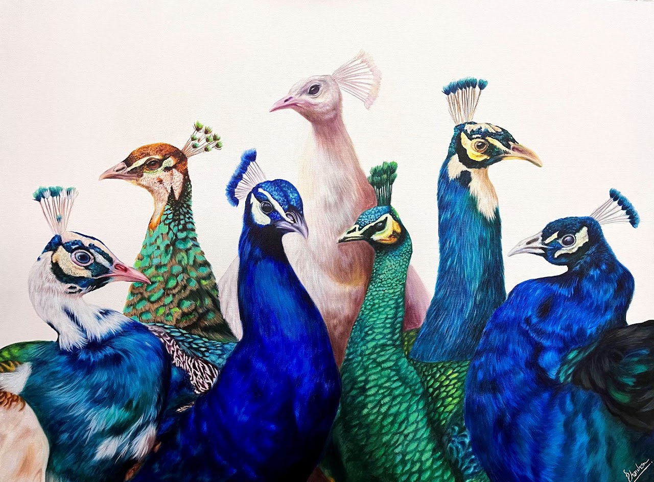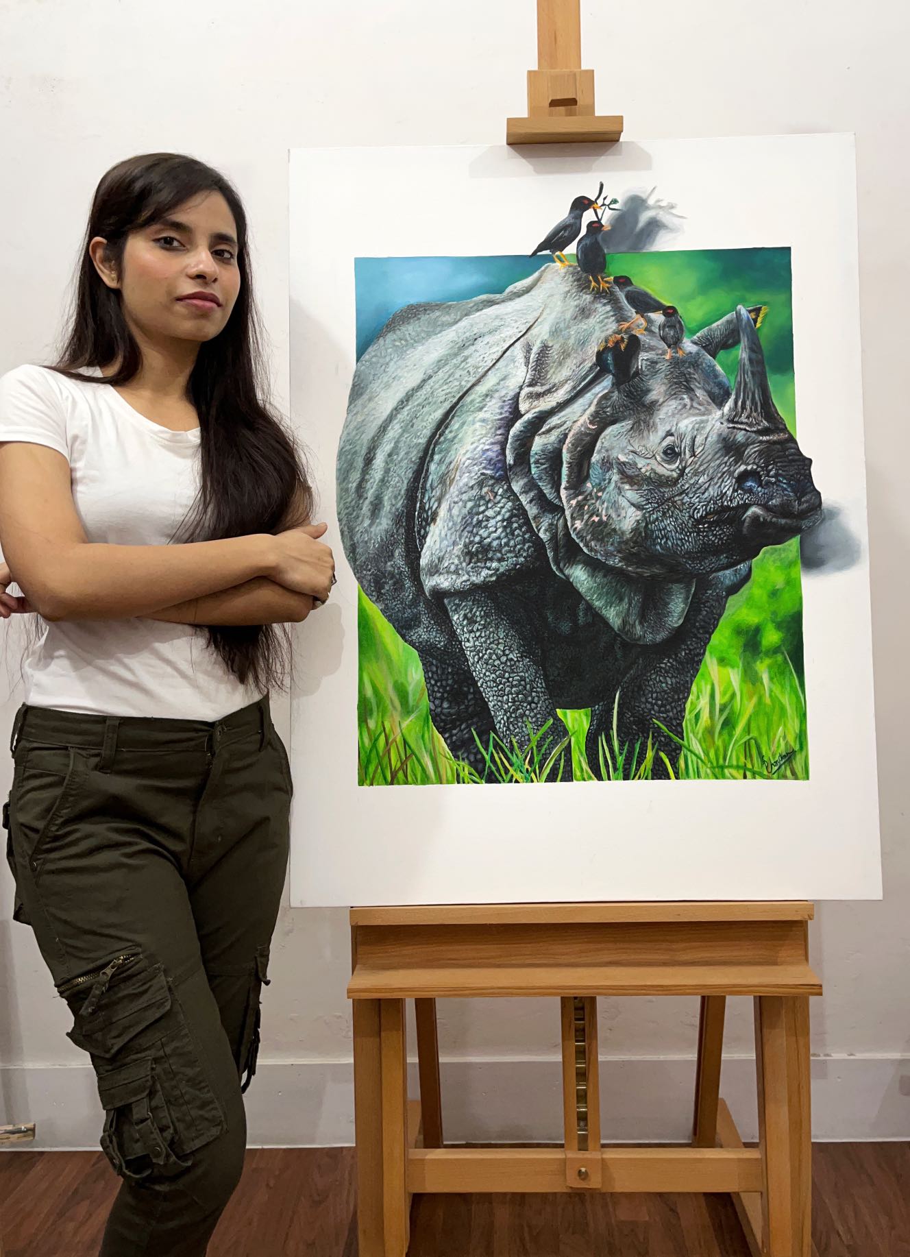 Her process is guided by instinct. Without formal instruction, she studies each animal closely—its texture, light, and quiet strength and brings it to life through countless layers of observation and patience. Every canvas feels like a meeting point between what she sees and what she feels, all while staying true to the animal before her.