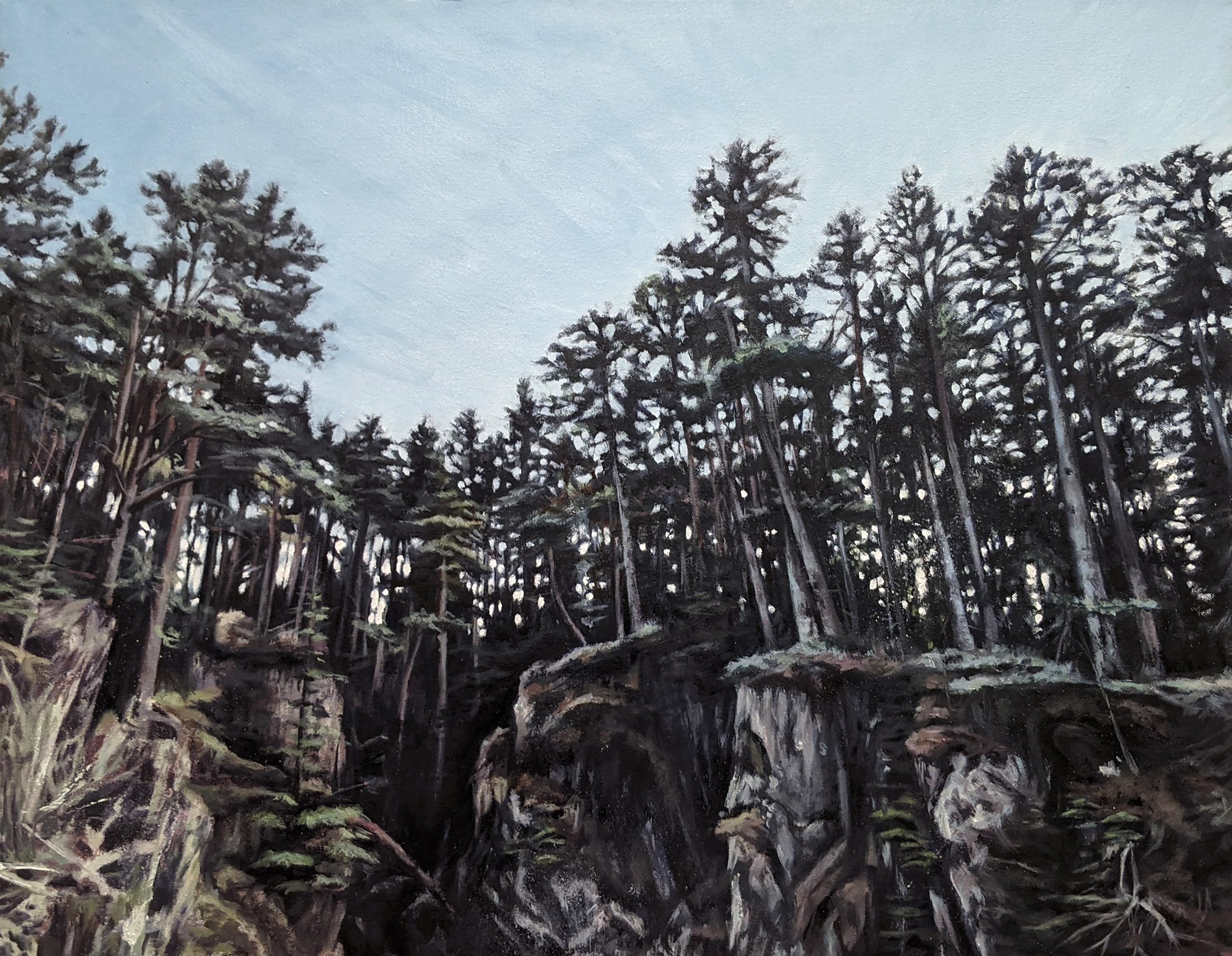 I draw most of my inspiration from nature and my own experiences and memories. Much of my artwork ties back to nostalgia in some way – I am always drawn to capture specific moments in time, whether because of an emotion I want to capture or a beautiful place I experienced while travelling, hiking, or exploring. I am always looking for small, seemingly insignificant moments that I think would make a good composition or express something I’m feeling now. Because of this, when I need inspiration, I will often look back through photos I’ve taken while travelling or hiking or will go outside and explore my backyard of the Pacific Northwest forests and parks. I also love painting en plein air, and when I’m not feeling inspired to work on my larger studio pieces, I love getting outside and working on smaller plein air pieces to get myself painting and to inspire myself.