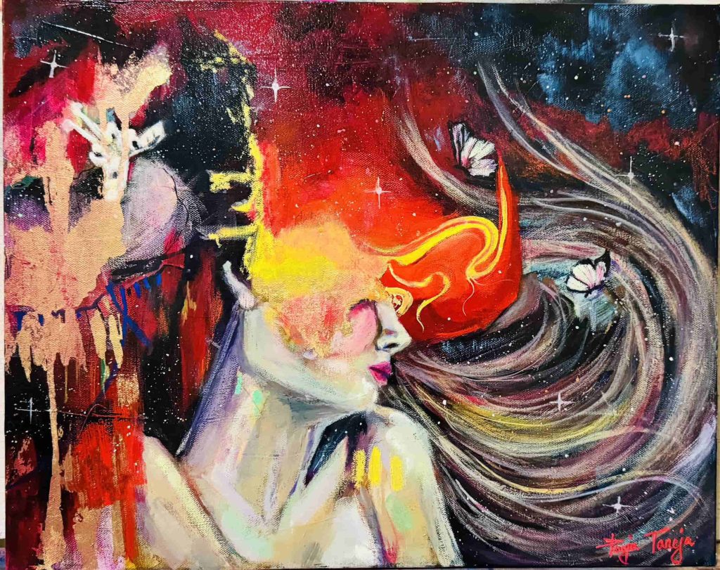 The move made me realise her true calling of being an artist. My life took a turn in the Summer of 2019 when I reintroduced myself to the art of healing. I was dealing with depression after the loss of my younger brother, and in the countless therapy sessions and meditations, I always looked for a reply to “What is my purpose on this planet.” During one of my meditation sessions, I had a vision of creating a bold woman’s portrait, and I instantly knew that it was my calling. Art connected me with my brother, as we always used to sit together when we were younger, and I would sketch and paint while he read his book. Art helped me heal myself and create subjects that helped me showcase my beliefs.