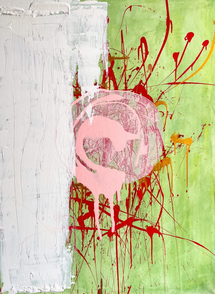 My last work, December, is my favorite so far. It’s a minimalistic 60×80 cm canvas with a grey background, large black and white strokes placed side by side, and a thin, bright green stroke cutting across them. This painting shows that life isn’t just black or white, good or bad. The bold black and white blocks represent the contrasts that shape our world—light and dark, self and other, life and death. These opposites aren’t separate; they define each other. Black only makes sense because white exists, just like life has meaning because of death. It’s an uncomfortable thought—to accept death, to acknowledge the darkness in our world.