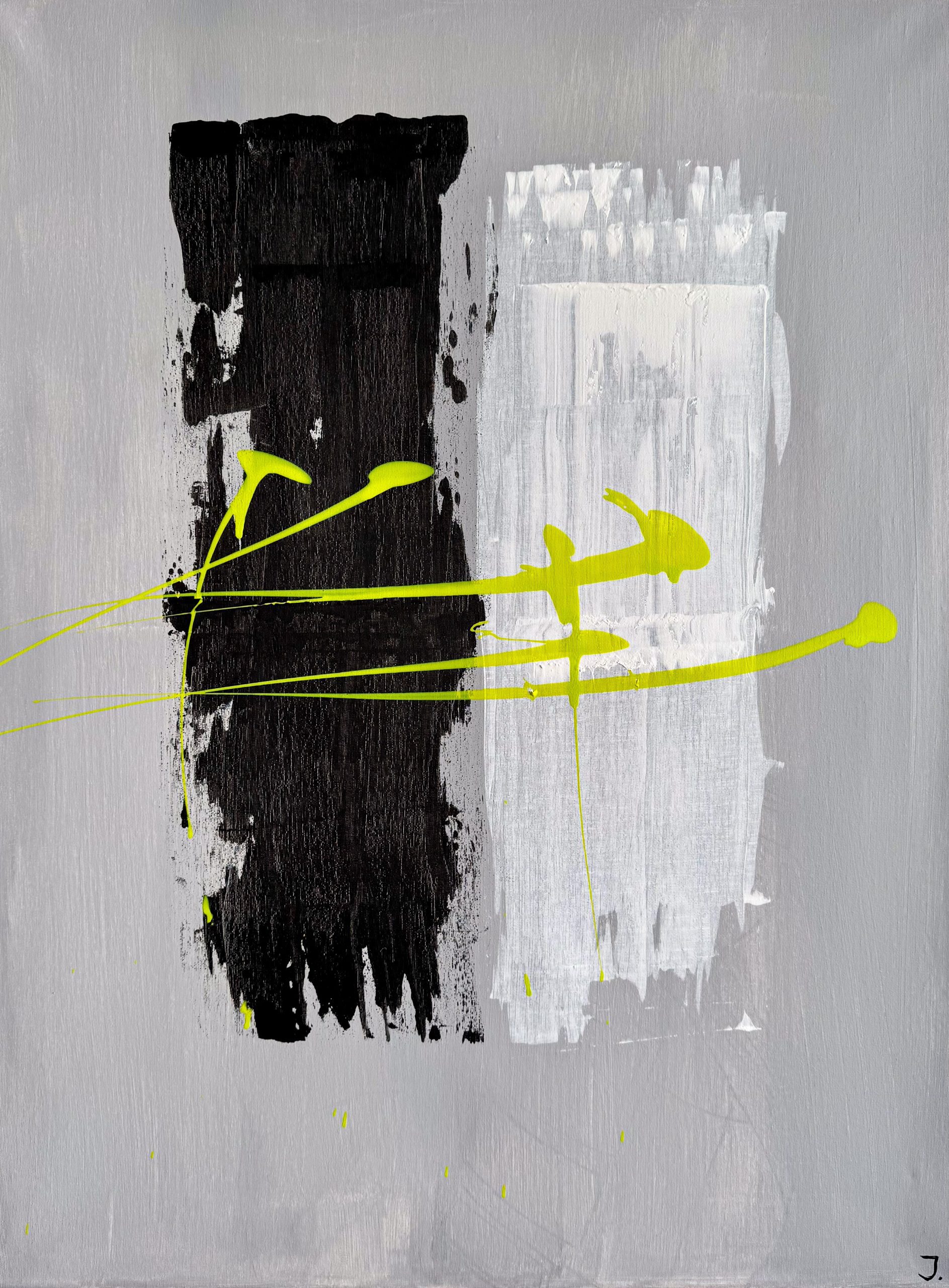 We want to reject it, to believe in only the good. But without darkness, there is no light. Without struggle, there is no growth. And the hardest truth to accept is that this duality exists within us, too. Each of us carries both light and shadow, good and bad. The neon green line connects these opposites, showing that real understanding comes from accepting both sides, not choosing just one. In the end, this painting is a reminder that nothing exists alone. Meaning comes from the balance of opposites, from embracing both the light and the dark within ourselves and the world around us.