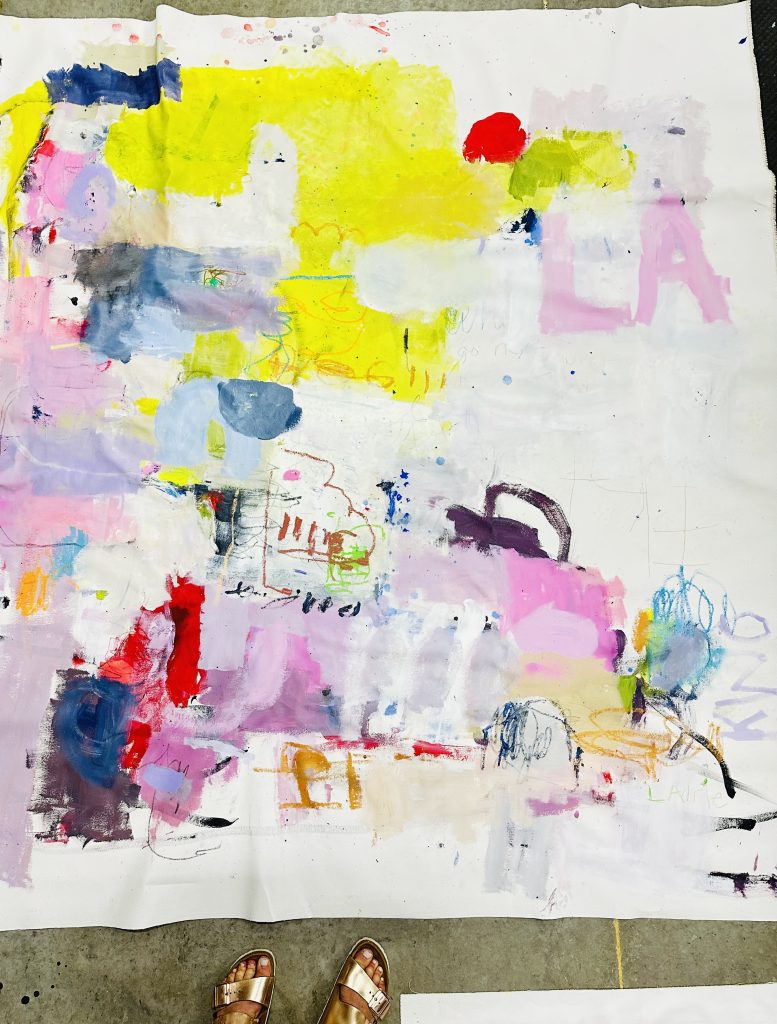 I always approach my art with a sense of curiosity and wonder. Creating is fun and I start by making marks and applying paint to the canvas. I work in layers keeping what I like and destroying what I don’t. There is a call and response that happens when I’m working and I just respond to what is happening before me. In the studio, I am a rule breaker. I like to mix materials and my work often includes crayons, markers, collages, pencils, oil pastels, and paint.