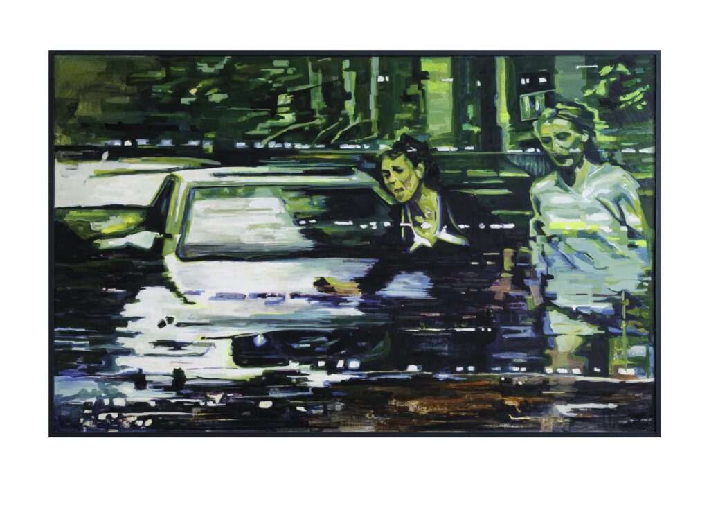 That sense of interruption is very intentional. I’m interested in what happens when you only get part of a scene, or when something feels cut off before it resolves. Our eyes are good at trying to fill in missing information, but they can’t always do it, and that gap is where a lot of the tension lives for me. I like disrupting flow and predictability. A single painting doesn’t have to carry a whole story. It can stop short and still feel complete on its own terms. That also lines up with how I think about memory. I tend to treat painting like hitting a pause button on a fleeting moment. In that pause, some information is always lost or blurred, and I’m more interested in holding onto that unstable part than pretending it’s all clear. I’m dealing with a lot of unresolved things in my own life, and the work lets me sit with that lack of resolve instead of fixing it. The interruption stays visible in the image, and the viewer can decide how far they want to go in filling in the rest.