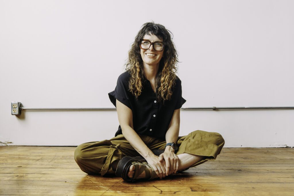 She earned a BFA, an MA in painting, and later an MFA in fibre art, a path that felt like a detour at the time but taught her everything about repetition and process and labour that now defines how she works in oil. The fibre degree trained her to trust slow, repetitive movement, to build through accumulation rather than single decisive gestures, and that patience shows up in every surface she makes.