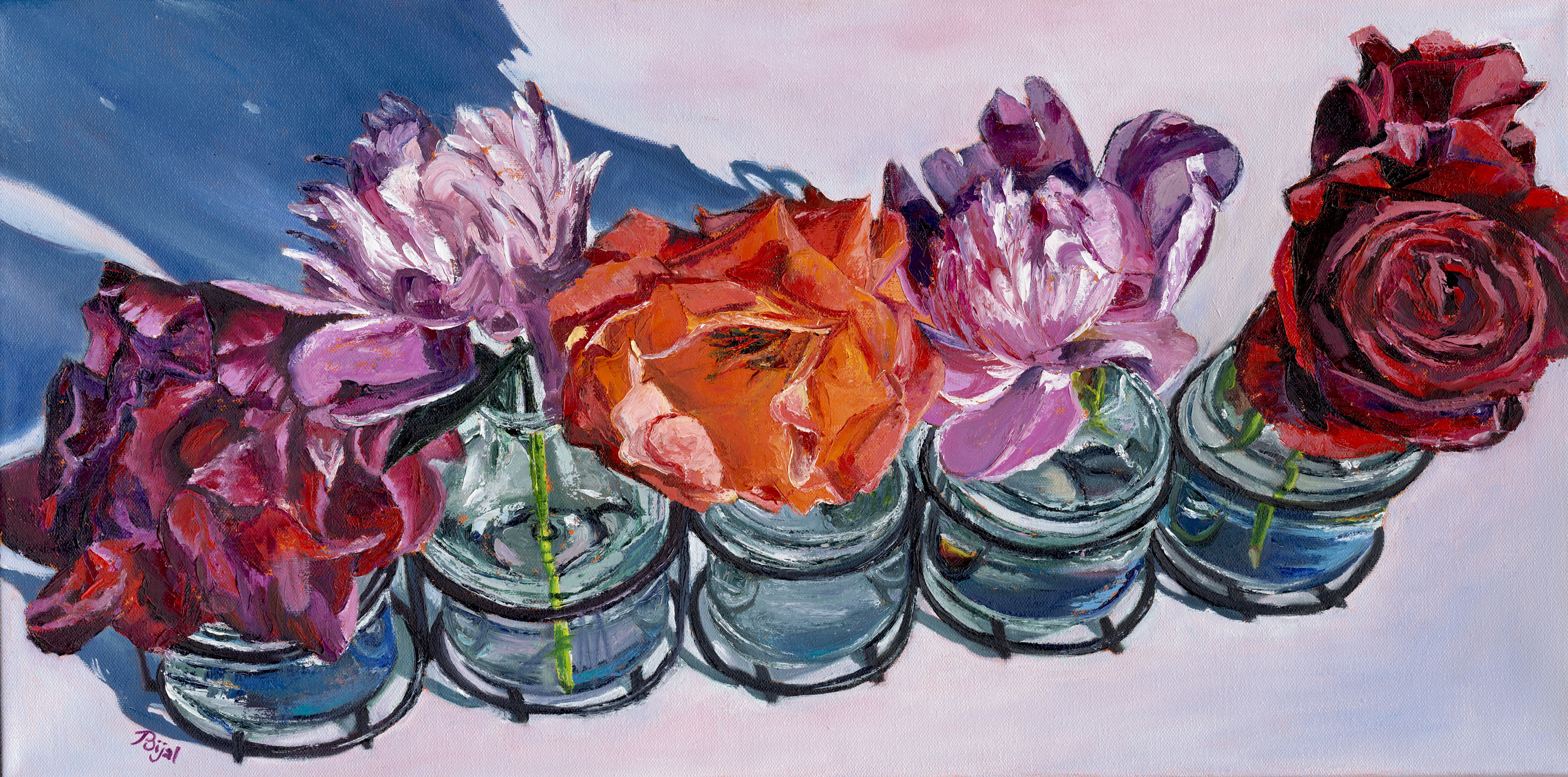 Bijal is a visual artist who transformed her lifelong passion for art into a professional career, despite initially pursuing architecture. Having lived across Europe and now based in Austin, TX, she draws inspiration from her surroundings, capturing the beauty of everyday objects and florals through the rich medium of oil paint.