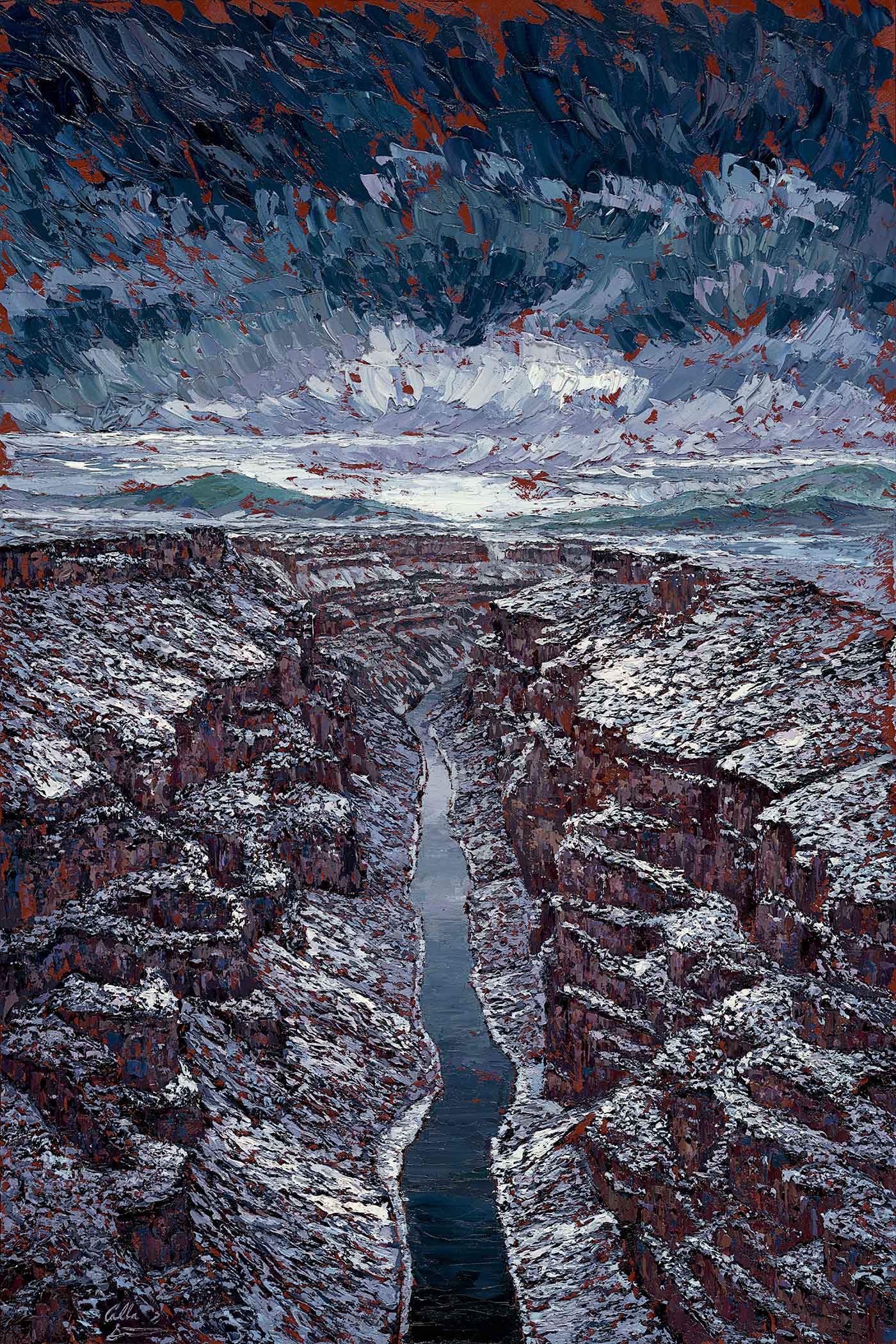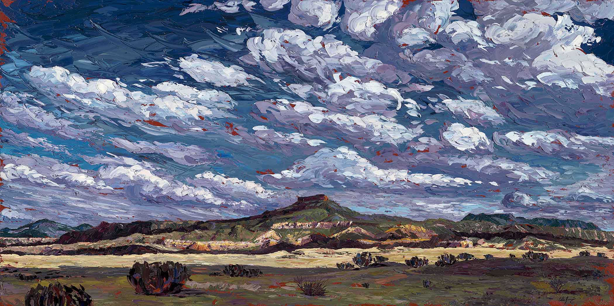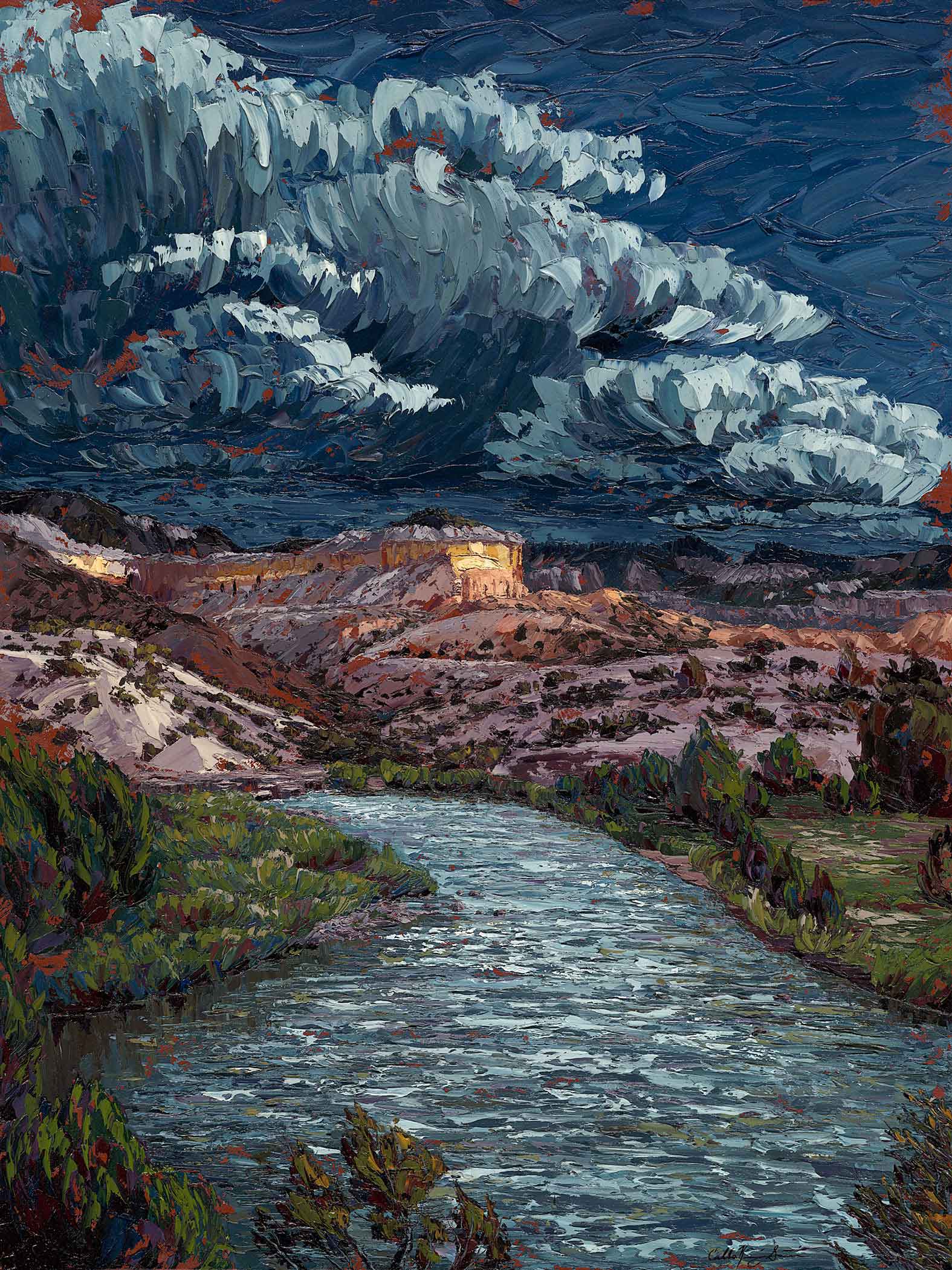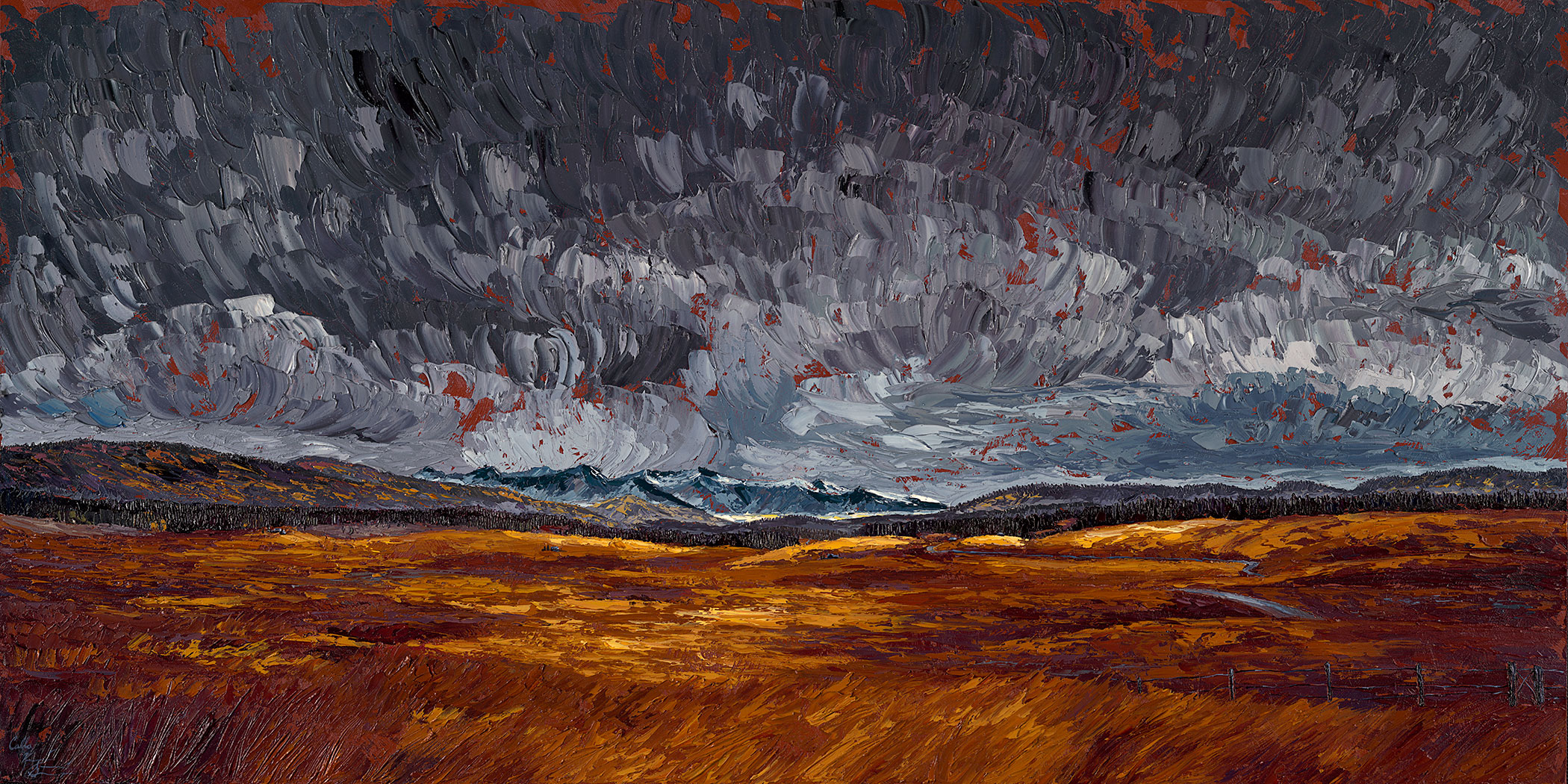 My work is born from a deep reconnection with nature—a return to the wild spirit within and the enduring stories whispered by the land, sky, and storm-swept Western landscapes. Each painting invites reflection on healing, renewal, and transformation through richly textured scenes shaped by the shifting moods of weather, light, and tempest.