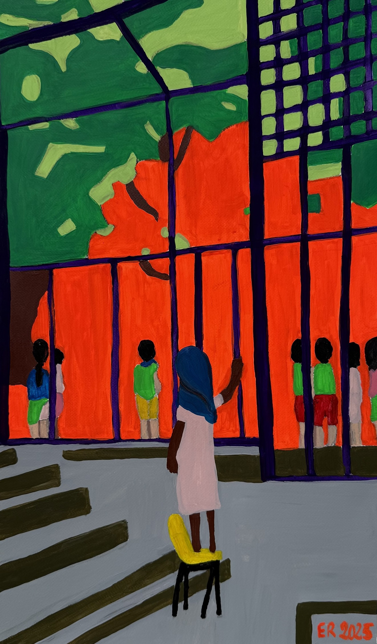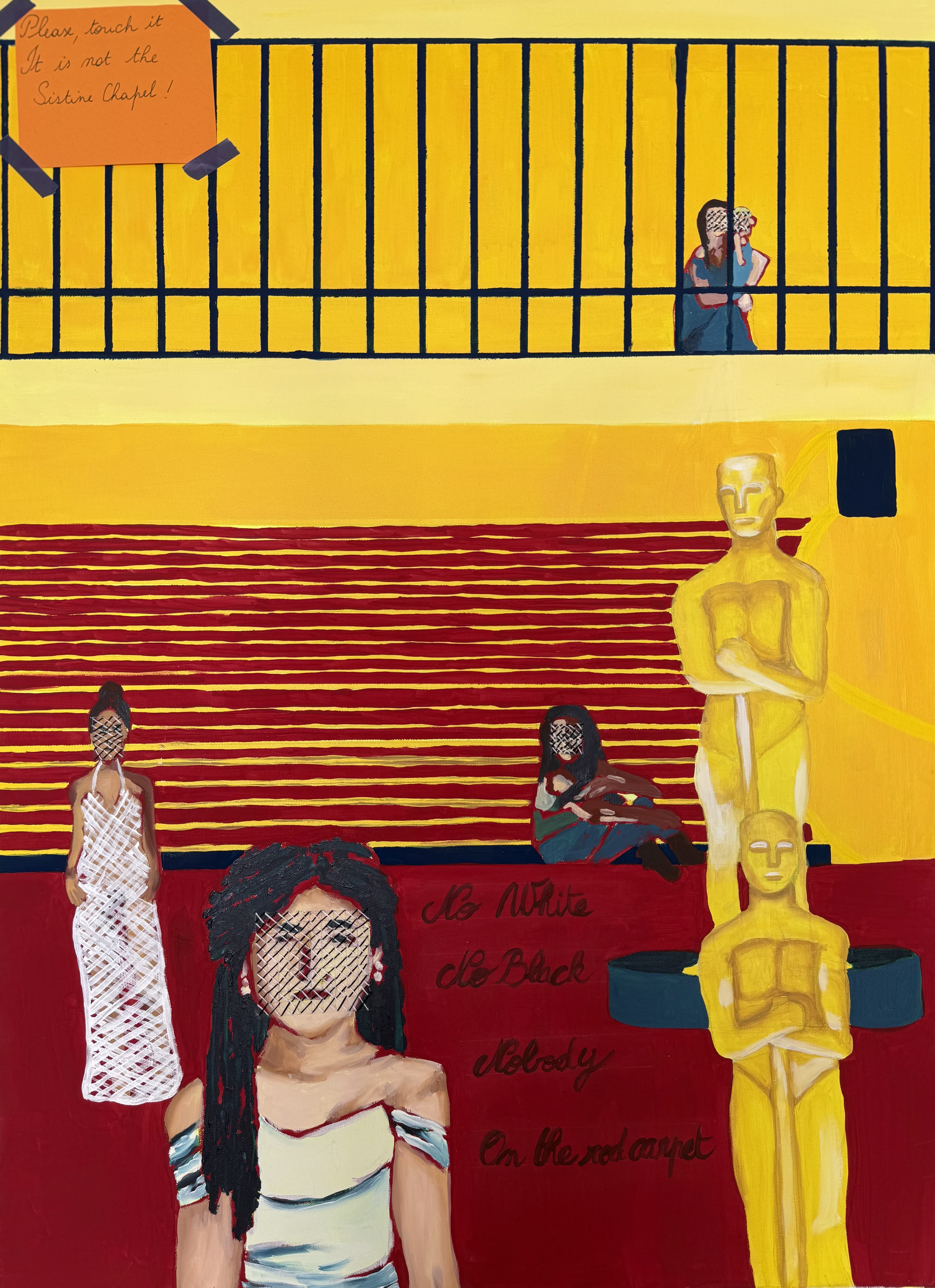 My work is figurative, infused with surreal elements and rooted in political and social engagement. I use acrylics, ink, collage, embroidery, and watercolor—techniques historically associated with the “minor arts”—to challenge the boundaries between craft and fine art. My practice explores invisibility, the rewriting of sacred codes, historical oppression, and the search for truth beneath idealized pictures.