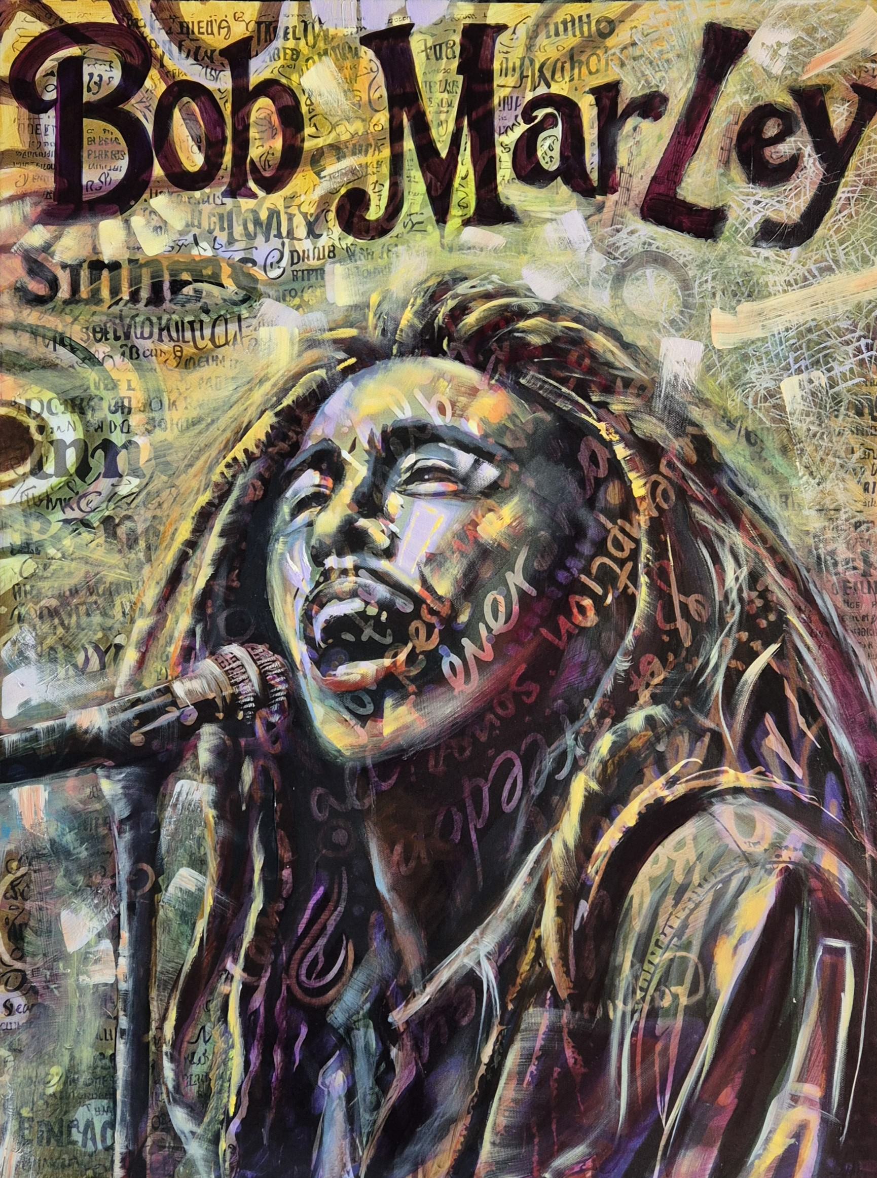 I’m deeply inspired by the power of words and often weave interesting quotes, song lyrics, poetry, or lines from the favourite films and books into my art. I enjoy making collaged backgrounds to add layers of depth and interest to my paintings, a reward for those who take time to look deeper into them.