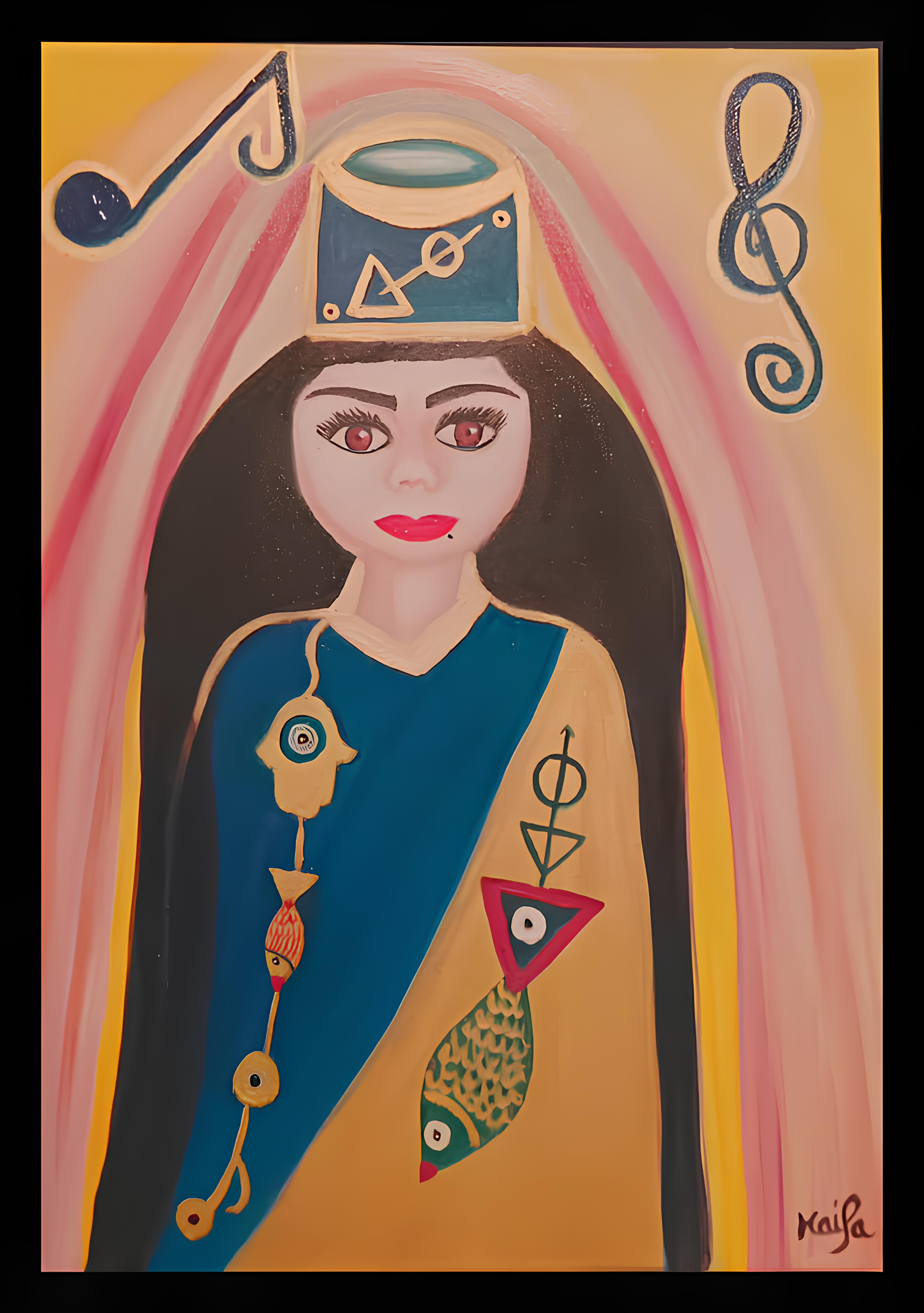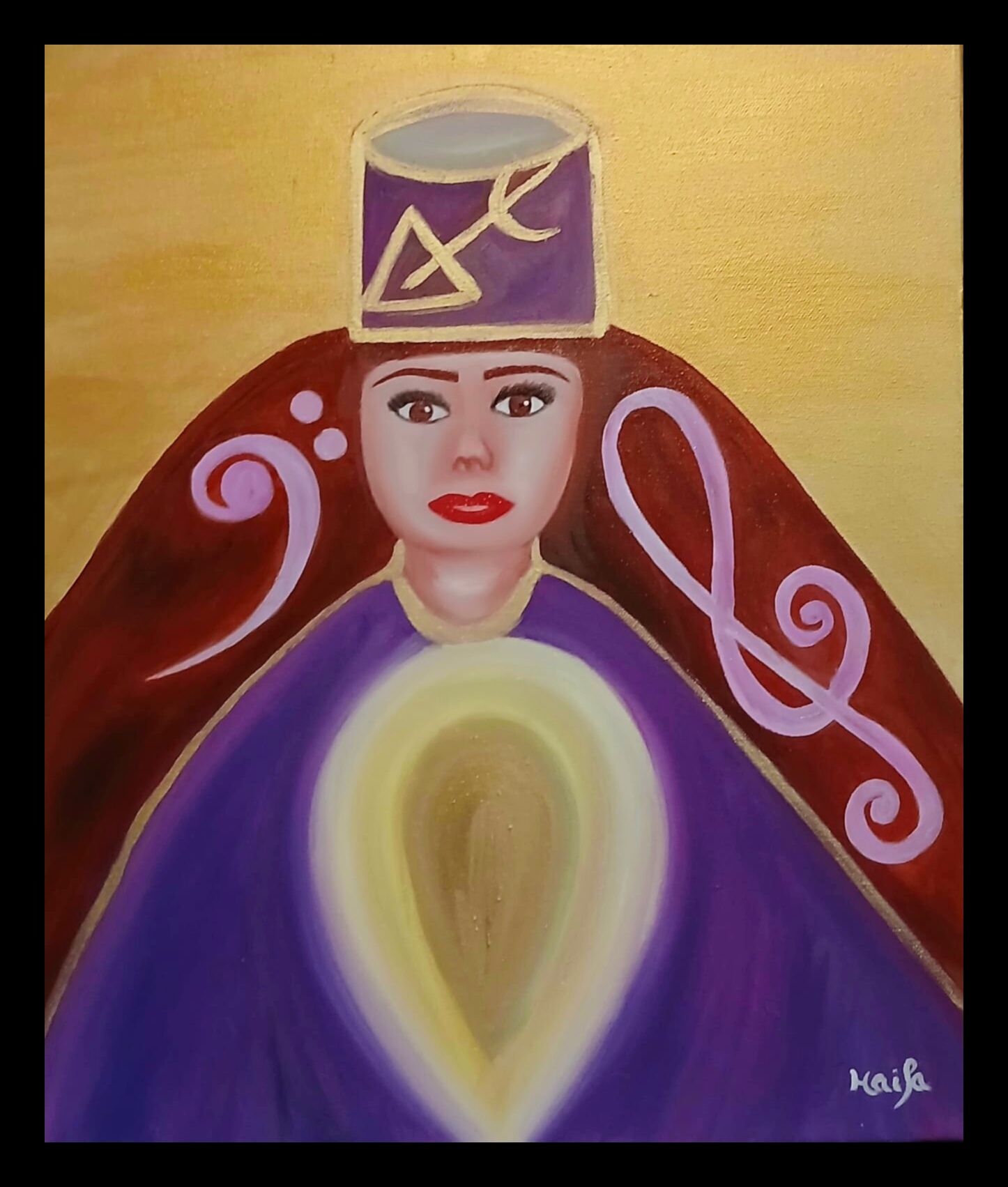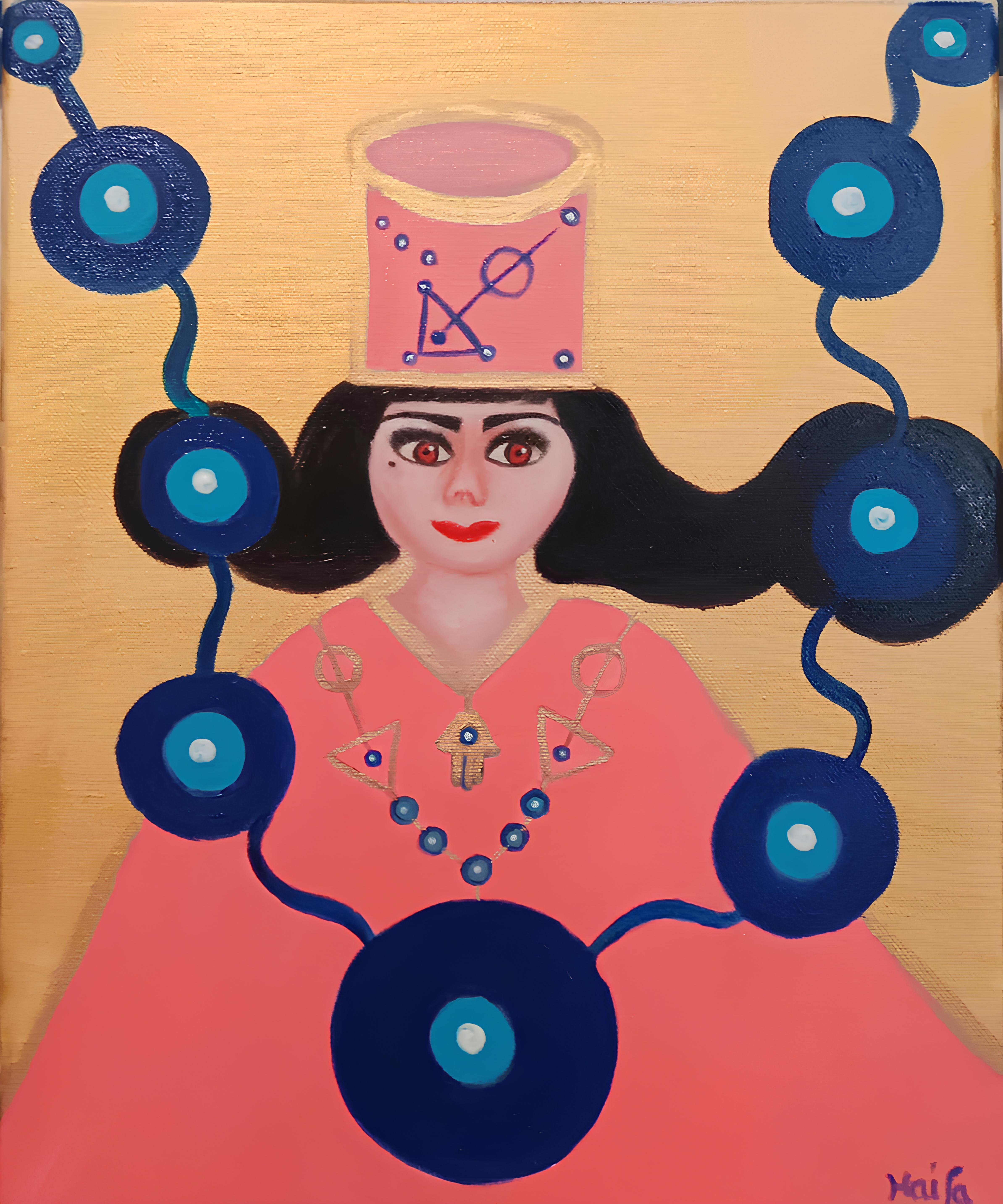 À travers son art, Haïfa offre un refuge, une force, une beauté intérieure. Elle peint pour que les femmes se reconnaissent, se redressent et se rappellent leur lumière. Son œuvre est un voyage, une guérison, une offrande.
