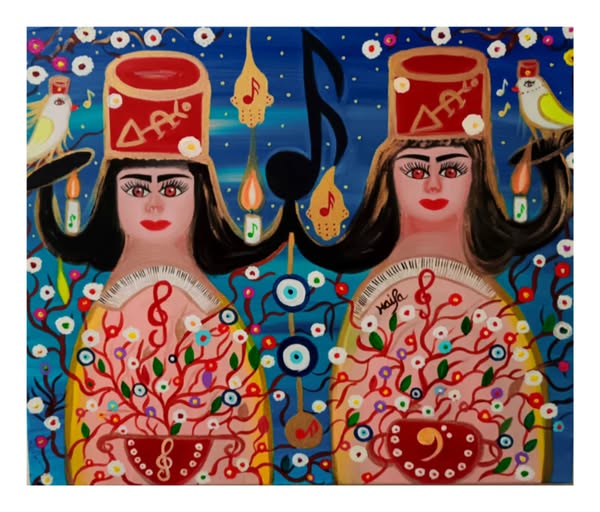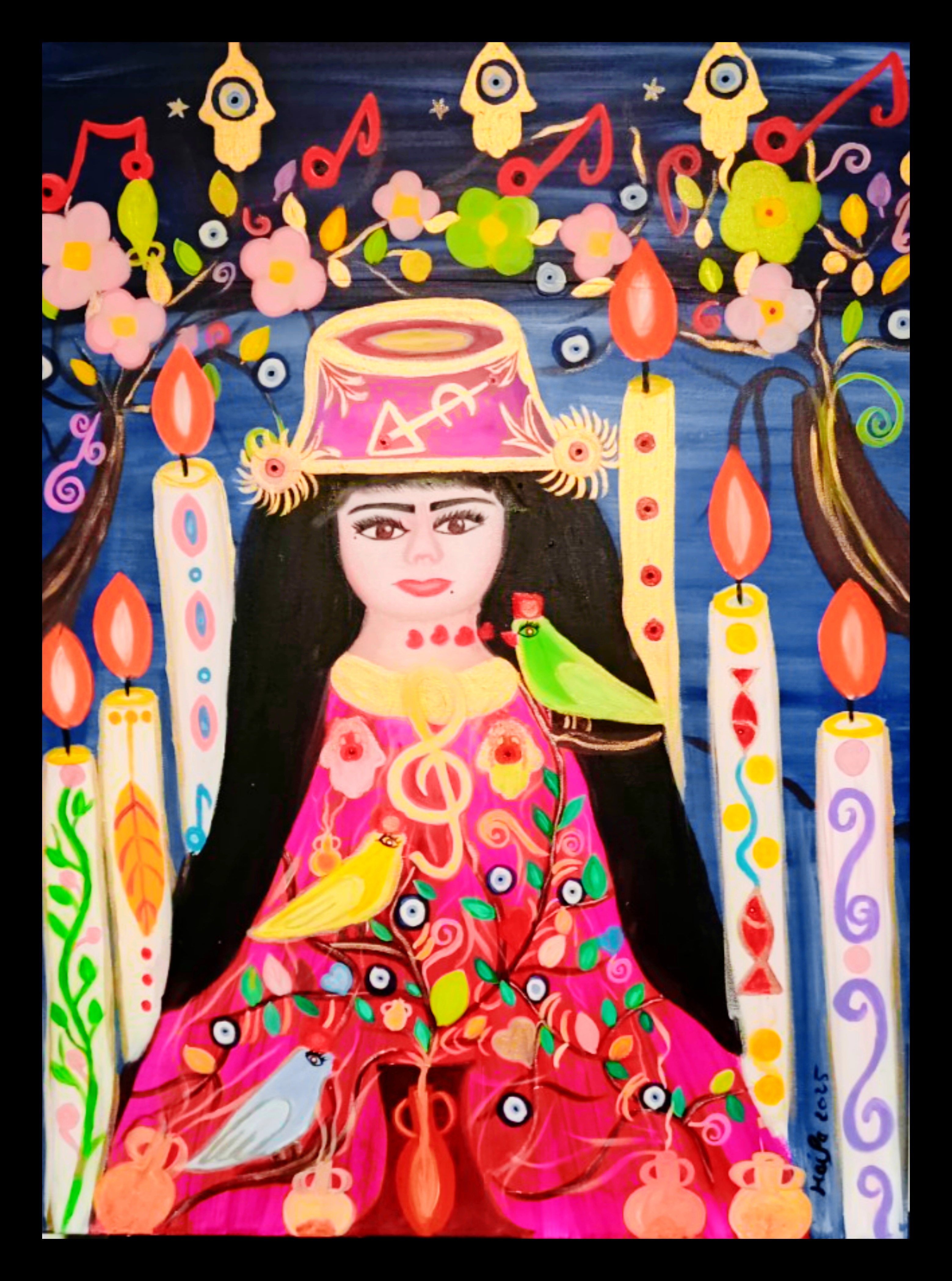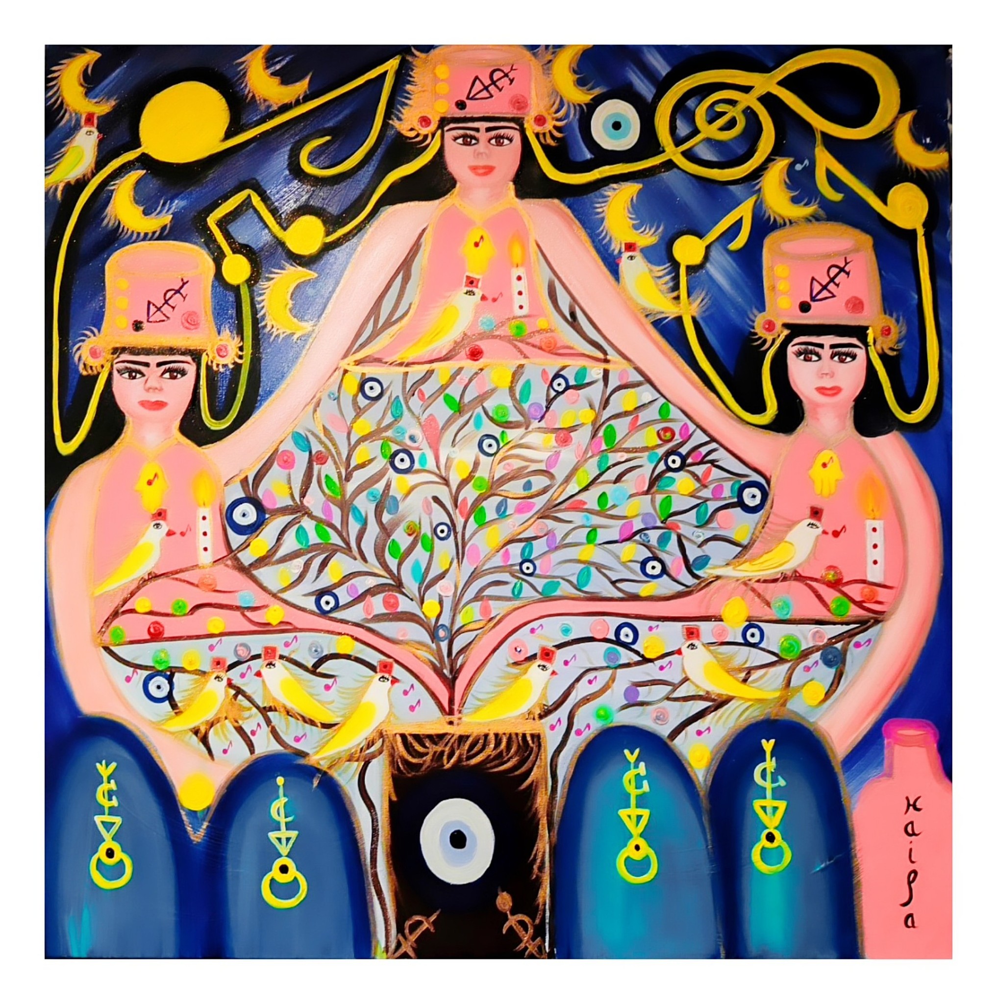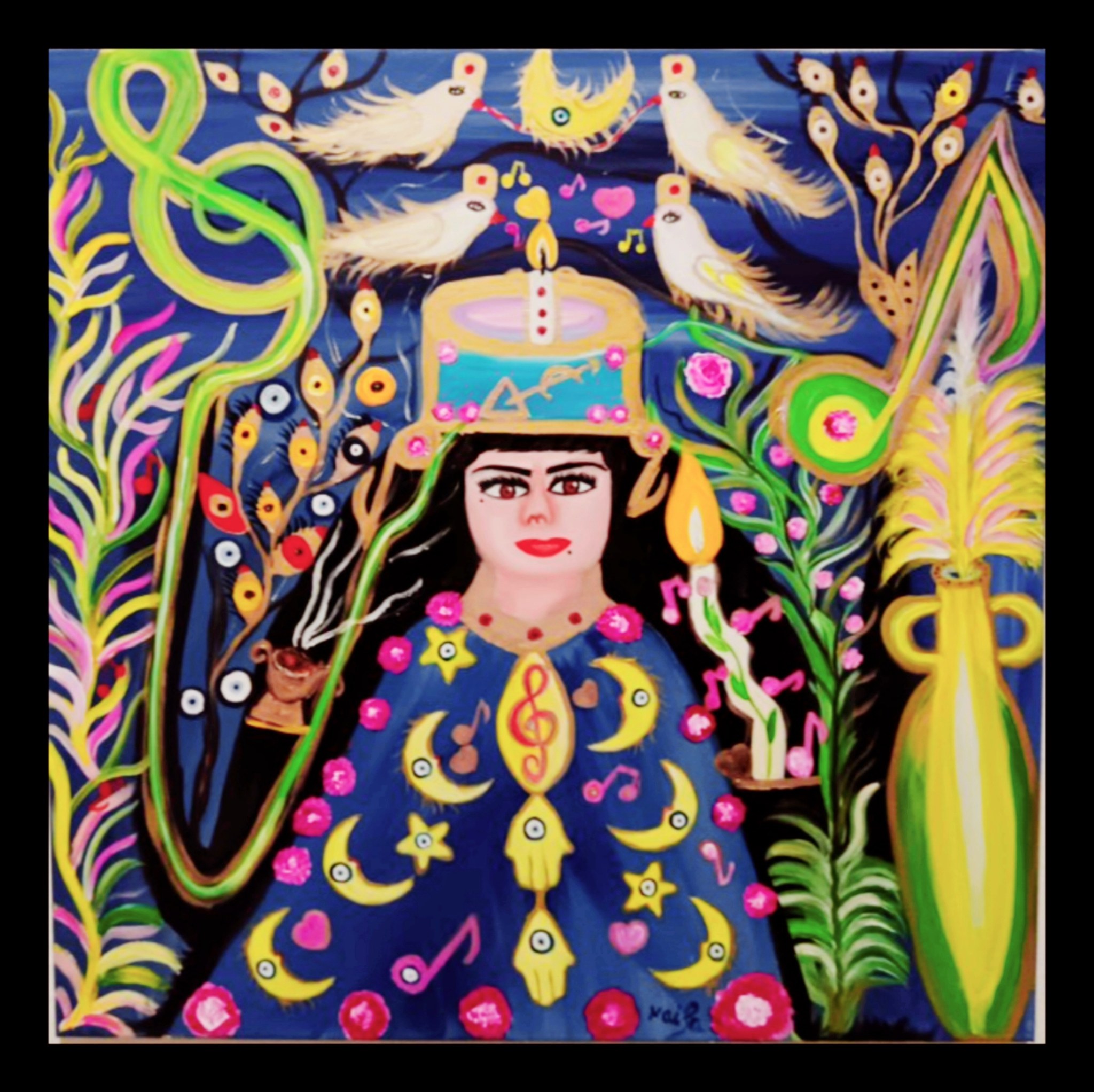 Mon art s’inspire profondément du féminin sacré, de la lumière intérieure et des héritages mystiques qui traversent les femmes de la Méditerranée. Je puise mes thèmes dans la spiritualité soufie, les rituels ancestraux, les symboles protecteurs et les couleurs sacrées qui évoquent la guérison, la force et la renaissance.