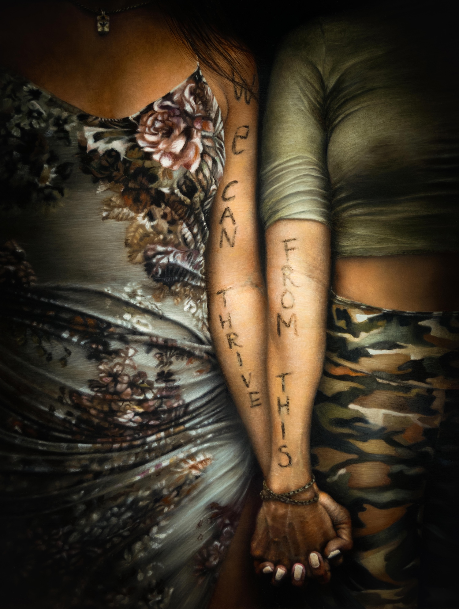 Kate Van Doren (American, b.1978) is a contemporary artist whose realism paintings, drawings, and photography explore themes of the human condition and human rights. With over two decades of experience as a board-certified art therapist, Kate harnesses empathy and connection to foster meaningful engagement with her inspirations to honor their stories. Her work incorporates positive psychology and the use of empowering mantras, transforming adversity into meaningful expression and reclaiming personal narratives.
