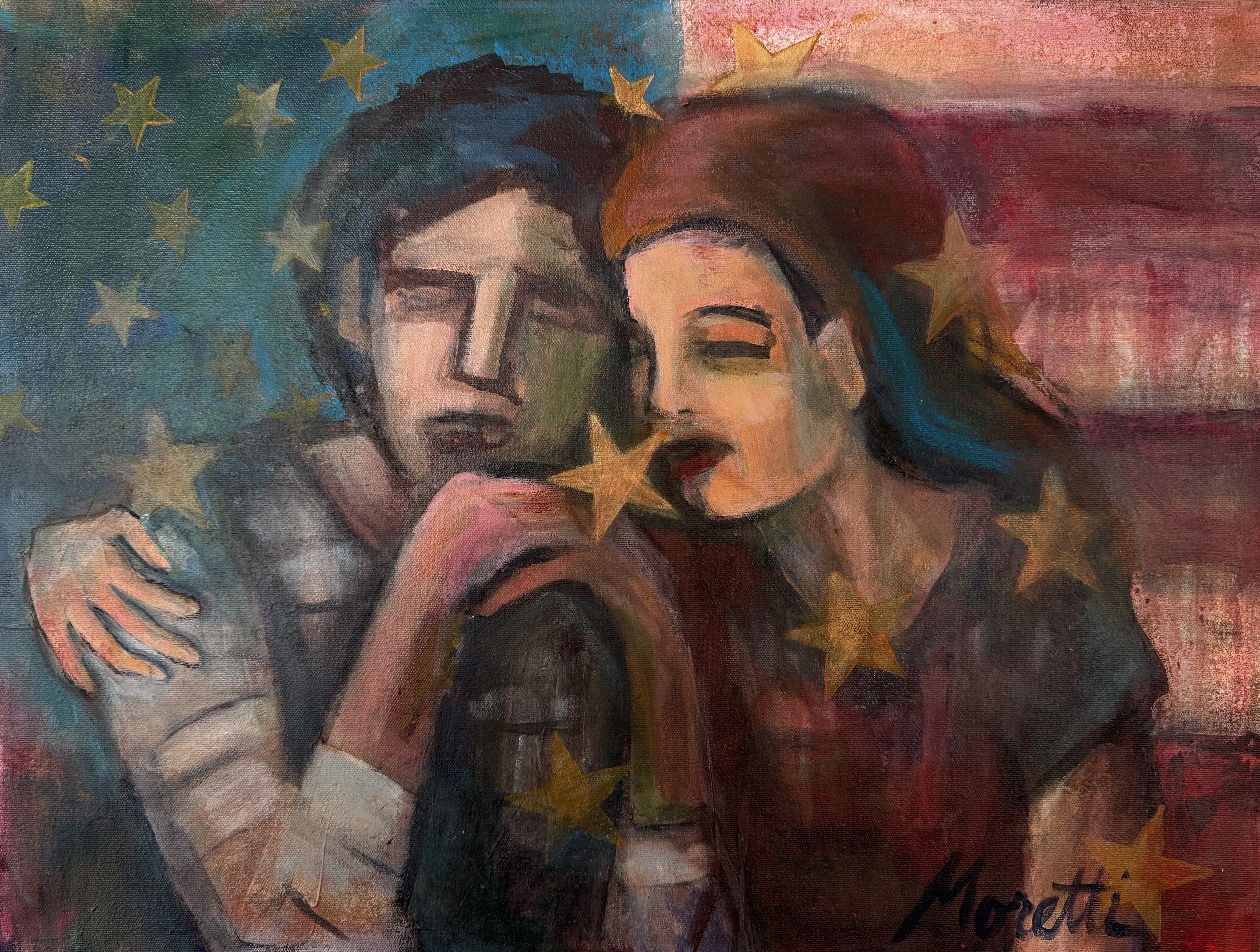 Lori Moretti is a Boston-based contemporary figurative painter whose emotionally resonant work explores the complexities of womanhood, identity and the socio-political forces that shape both. Born with a crayon in hand, she spent her formative years immersed in the art room, studying for several years under master painter Joseph Salafia. She went on to earn a dual degree in Psychology and Fine Arts from Tufts University and the School of the Museum of Fine Arts.