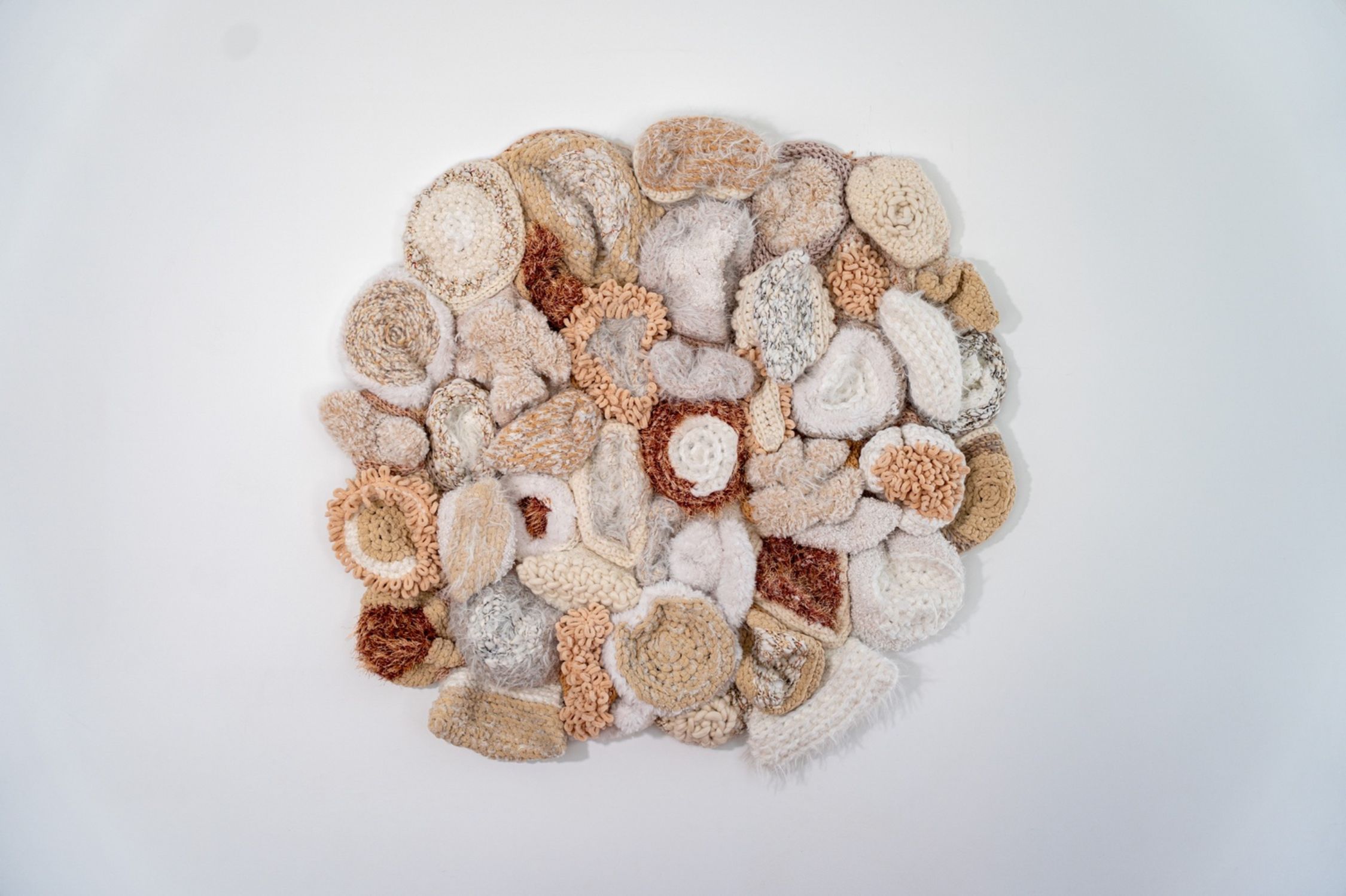 Later, I expanded into working with more rigid, perennial materials like stone, wood, and metal, each adding to my understanding of how materials can communicate. What truly transformed my practice was the realisation of the freedom that threads worked with needles could offer in sculptural creation. This method not only allowed for the expression of form but also for the engagement of the viewer in a unique way. The softness and flexibility of these works invite touch, creating a sensory dialogue between the art piece and its audience.