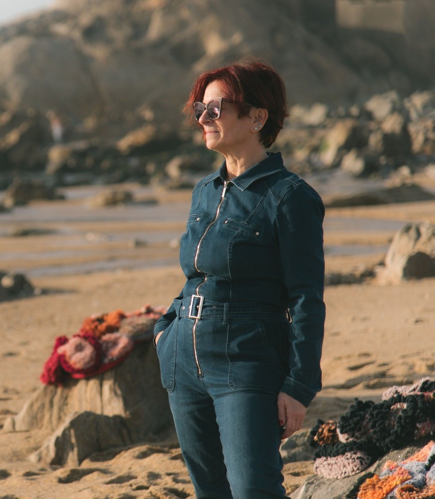 Marita Setas Ferro is a Portuguese creative in several areas: art, crafts, fashion, sustainability and cultural manager. She likes to combine them in new and impactful approaches. She has been working as culture manager and creative director for some years in projects, exhibitions and now is also developing exhibitions and curating dedicated to Fine Craft and Sustainable Design. She has been developing her textiles sculptures using traditional needle techniques, crochet and knitting, in an artistic representation of marine natural elements. The way is techniques are applied results in an initial surprise in which there is a confrontation between the tradition present in the techniques and the innovation of form, aesthetics, textures and colour and in this clash, the pieces build a dialogue with those who see, touch and feel them.