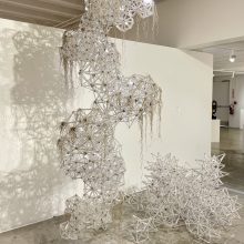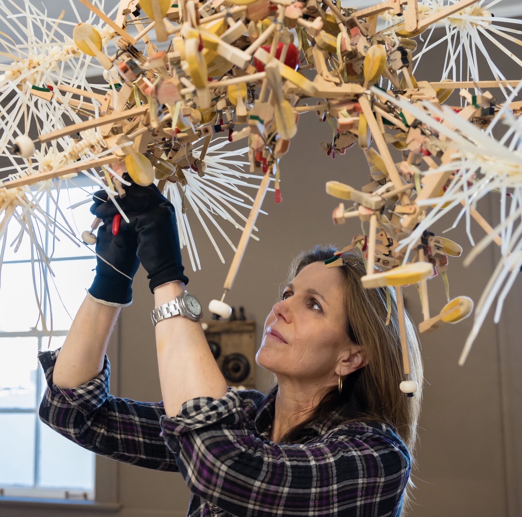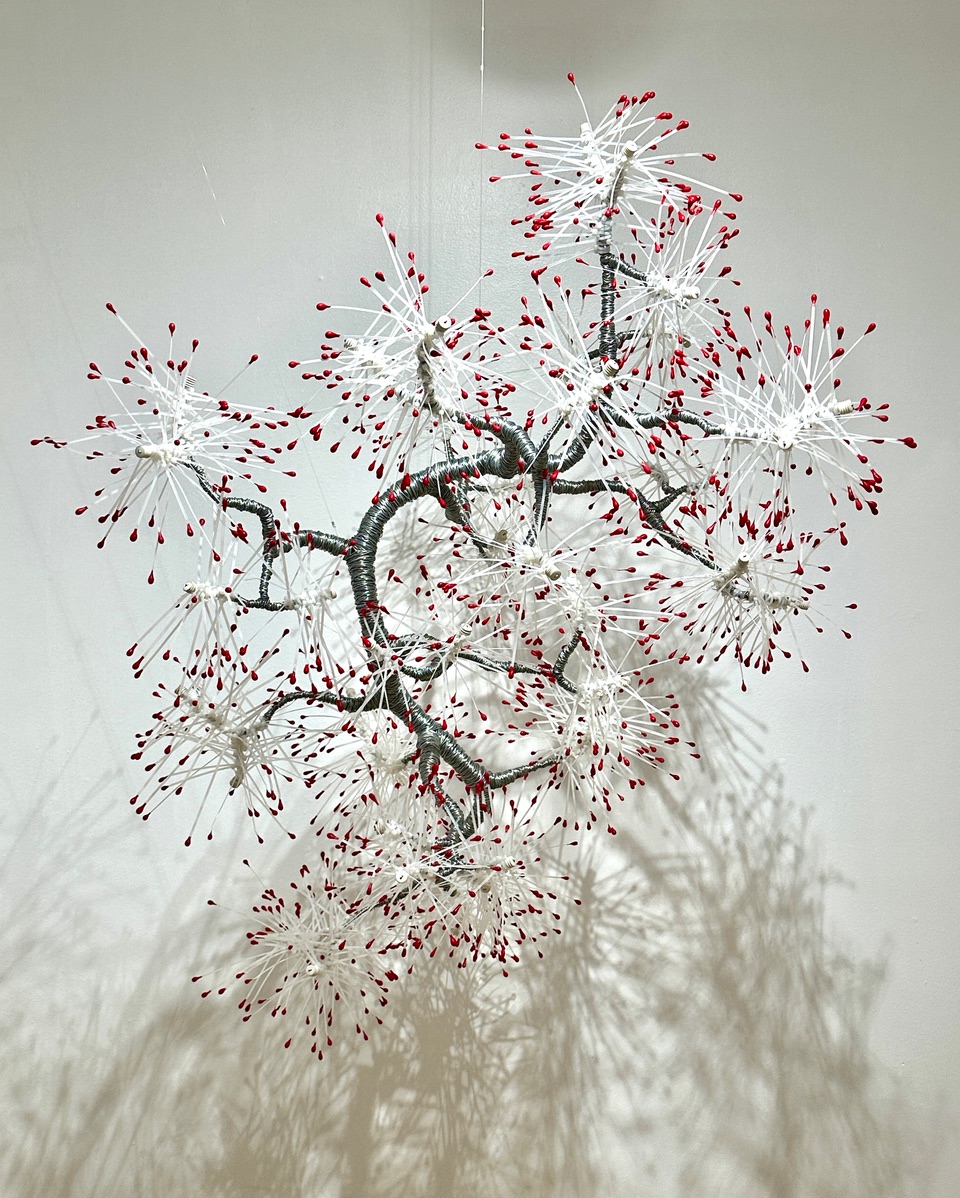My process is both experimental and intuitive, guided by the inherent qualities of the materials I use. A recent body of sculptural work emerged from an auction acquisition of thousands of steel sewing machine bobbins. When the retiring sewing supply company owner asked what I was going to do with them, I said, “I have no idea, but there’s something exciting there.” I allowed the materials to rest and accumulate a kind of dormant energy, until their formal possibilities revealed themselves—initiating a process of material exploration and transformation that defines my practice.