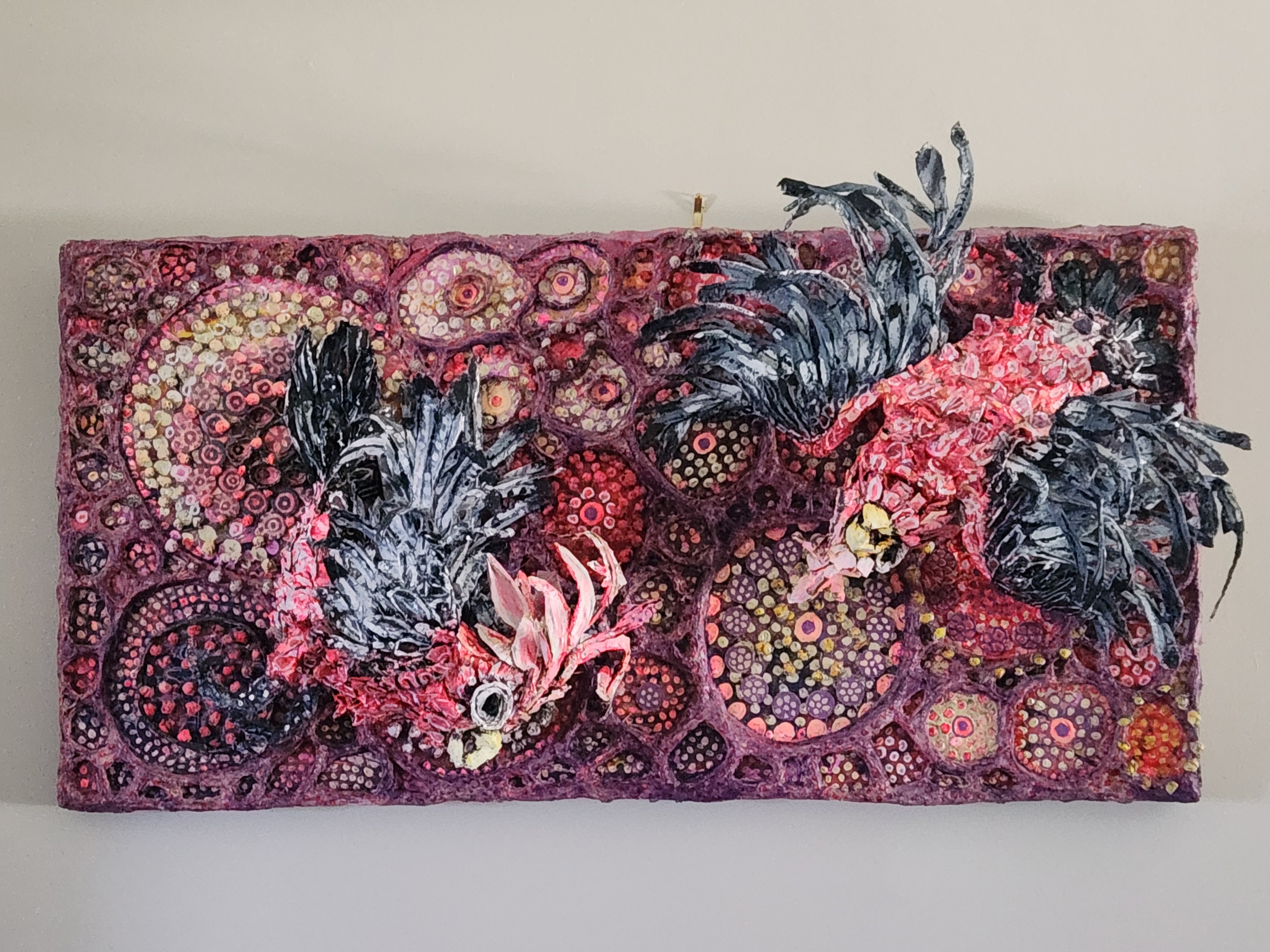 Inspired by the fauna and flora of my homeland Australia I create 3 dimensional sculptural work that escapes the boundaries of the canvas with passion and humor. Inspired by a hard road traveled i connect to the fragile spirit of creatures i paint.