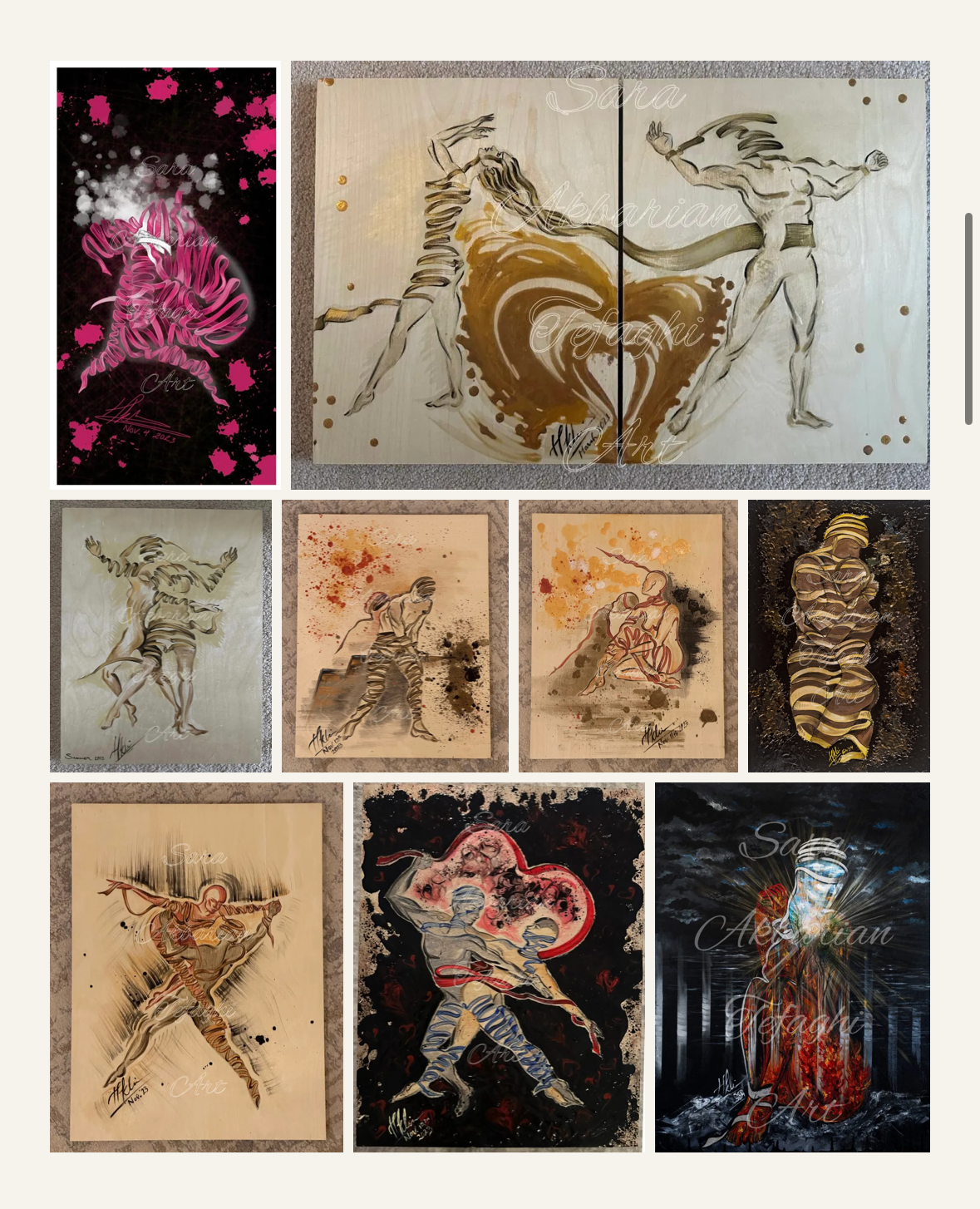 Sara is a self-taught artist and mom of two. She rebuilt her life and art brand when she immigrated to the US in 2012, and is now renowned for her unique "Ribbon People" and "Ribbon Land" series, trademarked in 2024. Her art explores the limitless dimensions of human experience, from apathy to love. Sara is a storyteller, only using a brush instead of a pen.