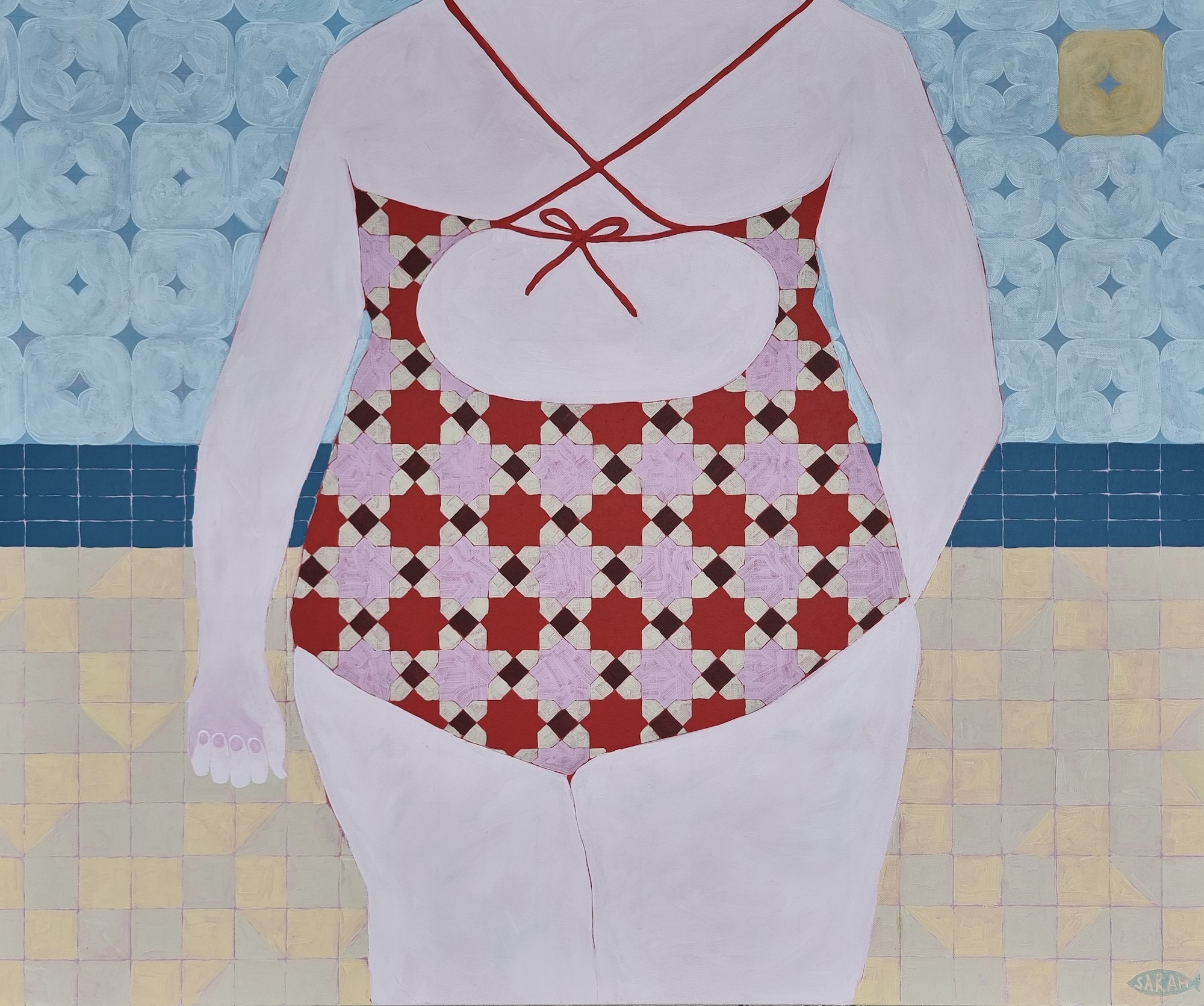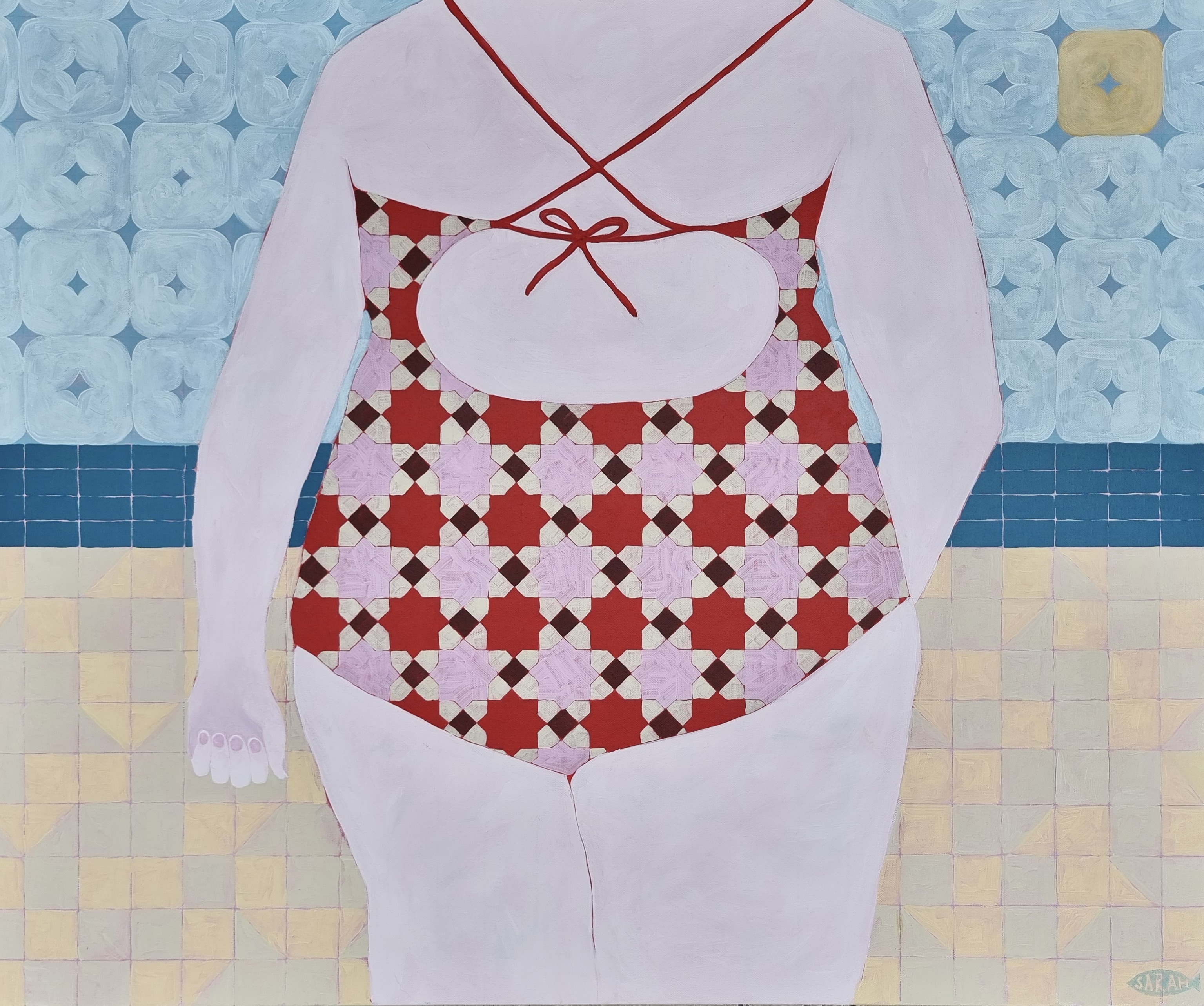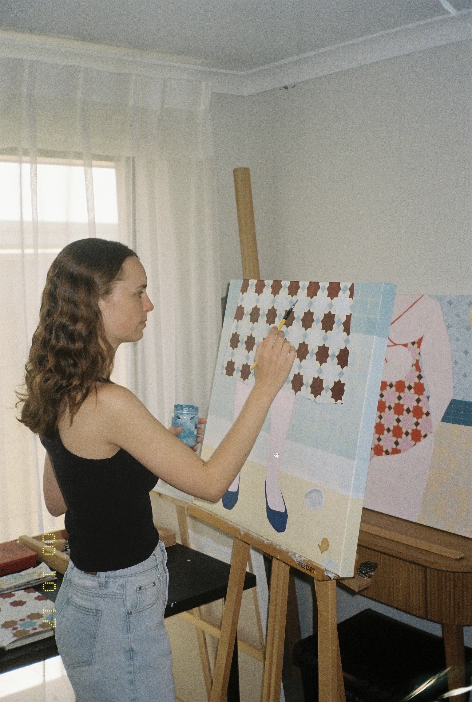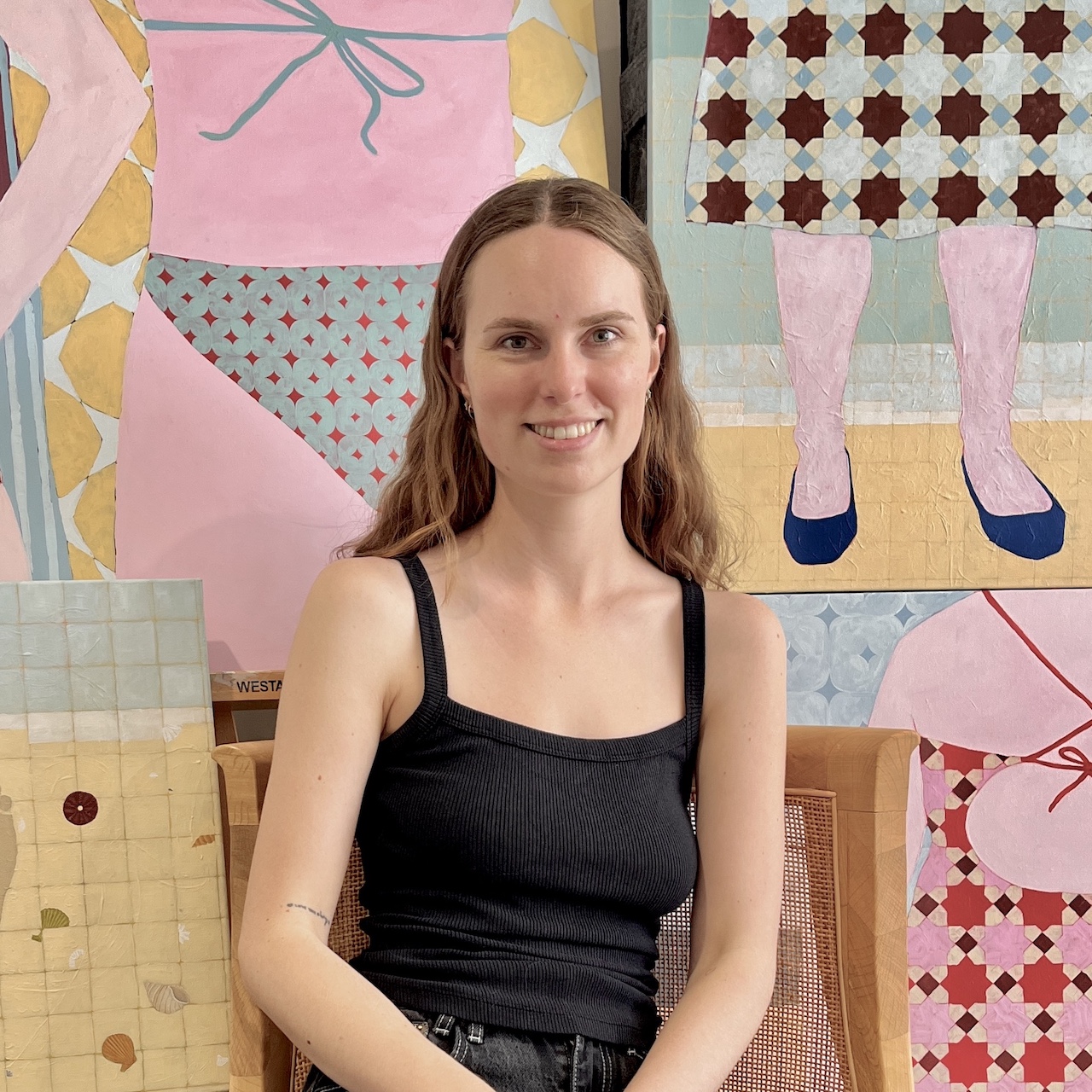 My name is Sarah Nortmann. I am an emerging artist based in Western Australia. My journey into the world of art began when I was young, and continued in earnest midway through my science degree as a means of escape; to paint was to feel like I could finally take a breath. My work is influenced by my own lived experience, paired with the concept of memory, be it my own or that recalled by others. I draw inspiration from both physical and emotional spaces; my intention is to capture the intimate feelings that are evoked by memory on canvas. The central themes of my art include memory, reminiscence and shared human connection. Through mosaic-inspired patterns and a bold palette, I explore the manifestation of nostalgia, and what it means to feel resonance for a memory that isn’t your own. My creative process involves subconscious feeling that slowly materialises into a vague form that I can then translate through paint onto canvas. I often experiment with different patterns to represent various elements of the composition to add depth and complexity to my work. Each piece is an offer of recognition for the feelings associated with the memories we hold. Ultimately, my work aims to foster a sense of kinship, to allow for memories to be felt, instead of just remembered. Looking forward, I am eager to continue exploring themes of memory, and to bear witness to how my art evolves alongside my own growth.