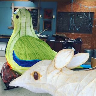 As a community artist, she has created opening ceremonies for major festivals including Woodford Folk Festival and Taranaki International Arts Festival, managed the Lismore Lantern Parade for a decade, and led community recovery projects. Her large-scale outdoor work includes choreographing fire, flag and puppet sequences with Neil Cameron Productions and Burning Sensations.