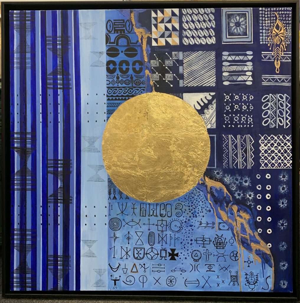 With Voyage Benin to Japan, my goal is to make history felt rather than simply explained. I approach history as embodied—carried through materials, surfaces, and atmosphere—rather than purely intellectual. The 24k gold leaf is central: gold holds spiritual and symbolic resonance across cultures, evoking divinity, power, protection, and transcendence, and allows history to exist as light, reflection, and presence. Visually, I build layers and rhythms that suggest movement, passage, and migration without literal depiction. The surface becomes a map of memory and spiritual travel, while moments of restraint give space for ambiguity and interpretation. The viewer is invited to step into this space and experience history as living, relational, and constantly reinterpreted.