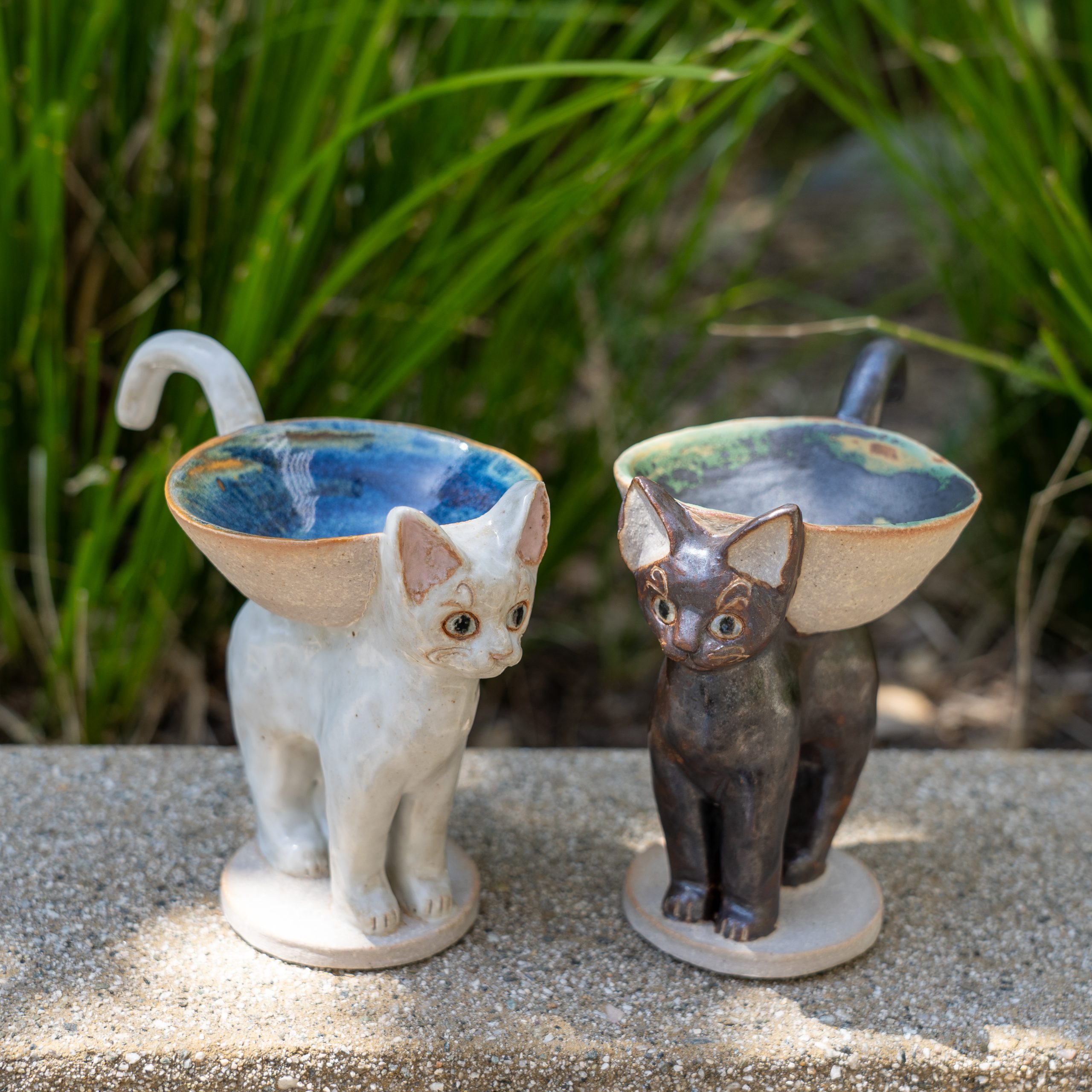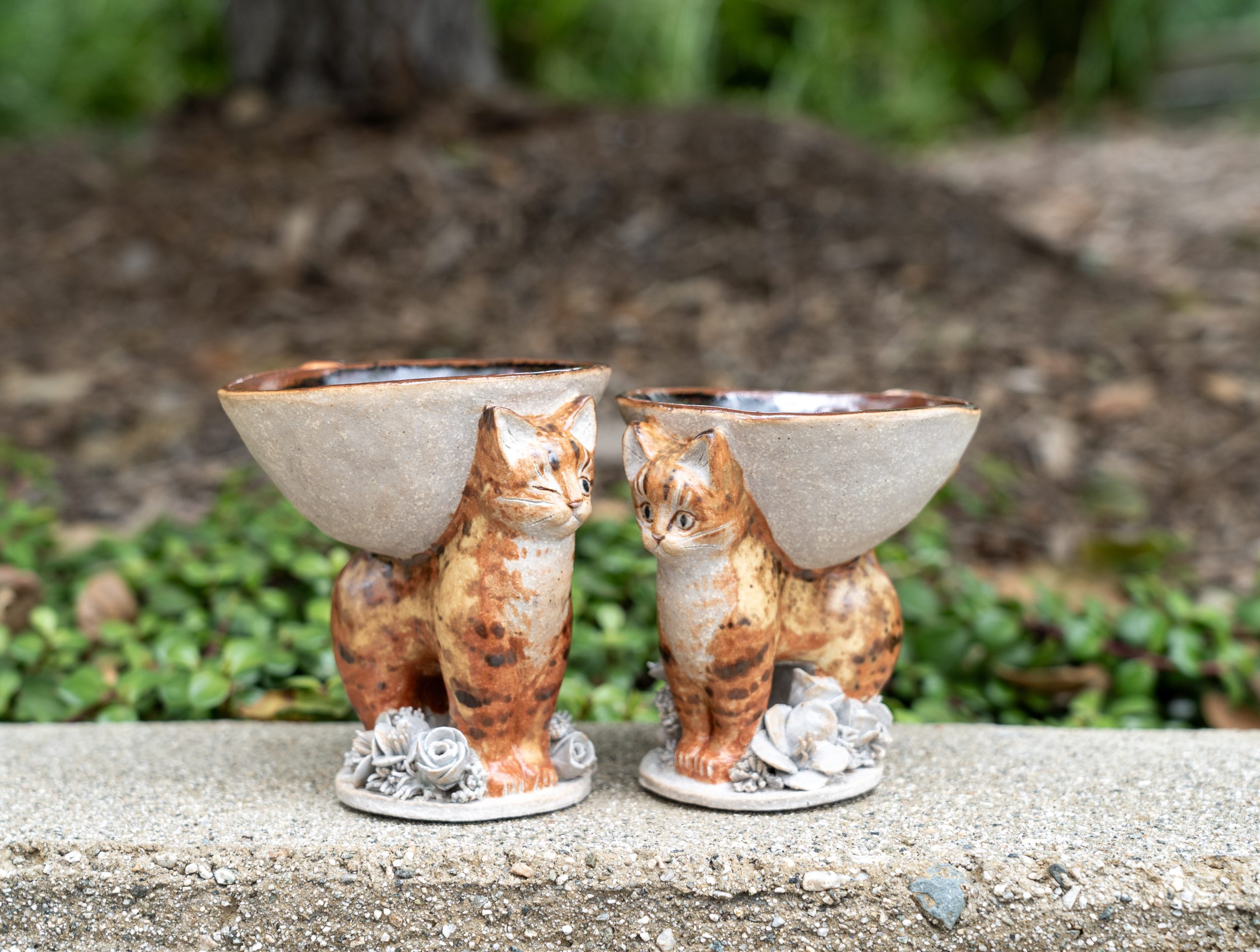 Experimentation is at the core of my artistic process. As a professional designer, I’m deeply familiar with iteration—the beauty of refining something step by step and watching it evolve. Sometimes, the outcome aligns more closely with the vision in my head; other times; unexpected surprises emerge—good and bad. I’ve created countless cat cups, and it’s not just about improving my technical skills to make them look more lifelike. The failures along the way—like a cat pottery piece with a burnt face—also hold their own unique identity. Every experiment, even the so-called mistakes, adds to the creative journey. I welcome the final perfect piece but also embrace the test pieces that lead me there.