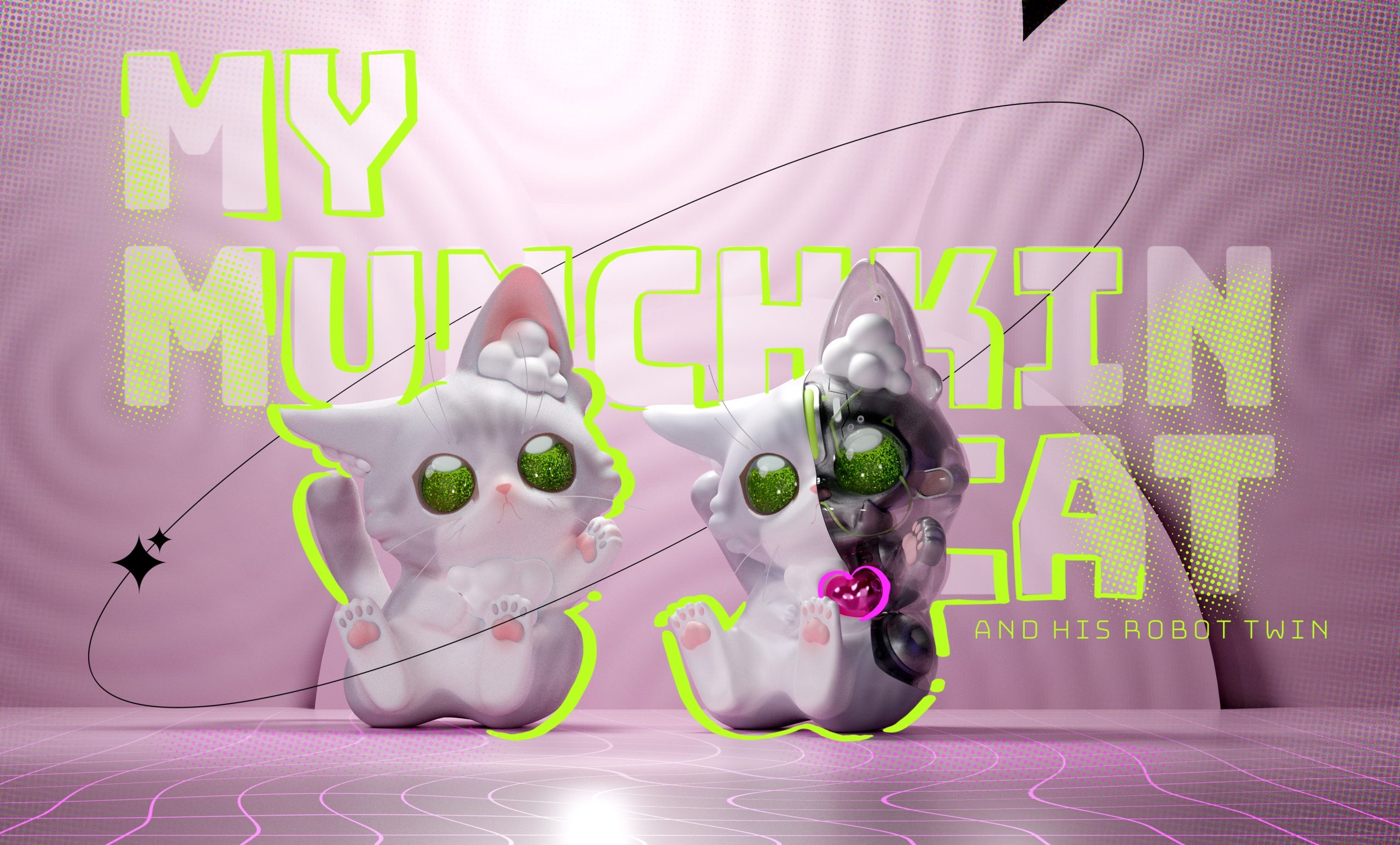 This 3D model is based on my first pet, a munchkin cat I brought home when I got my first job—marking a moment when I could finally care for a pet on my own. Throughout the COVID period, his companionship became a source of comfort and emotional support, making our bond incredibly precious. When creating the 3D model, I asked myself: How can I make this even cuter? I wanted to capture his essence while adding a playful, imaginative twist.